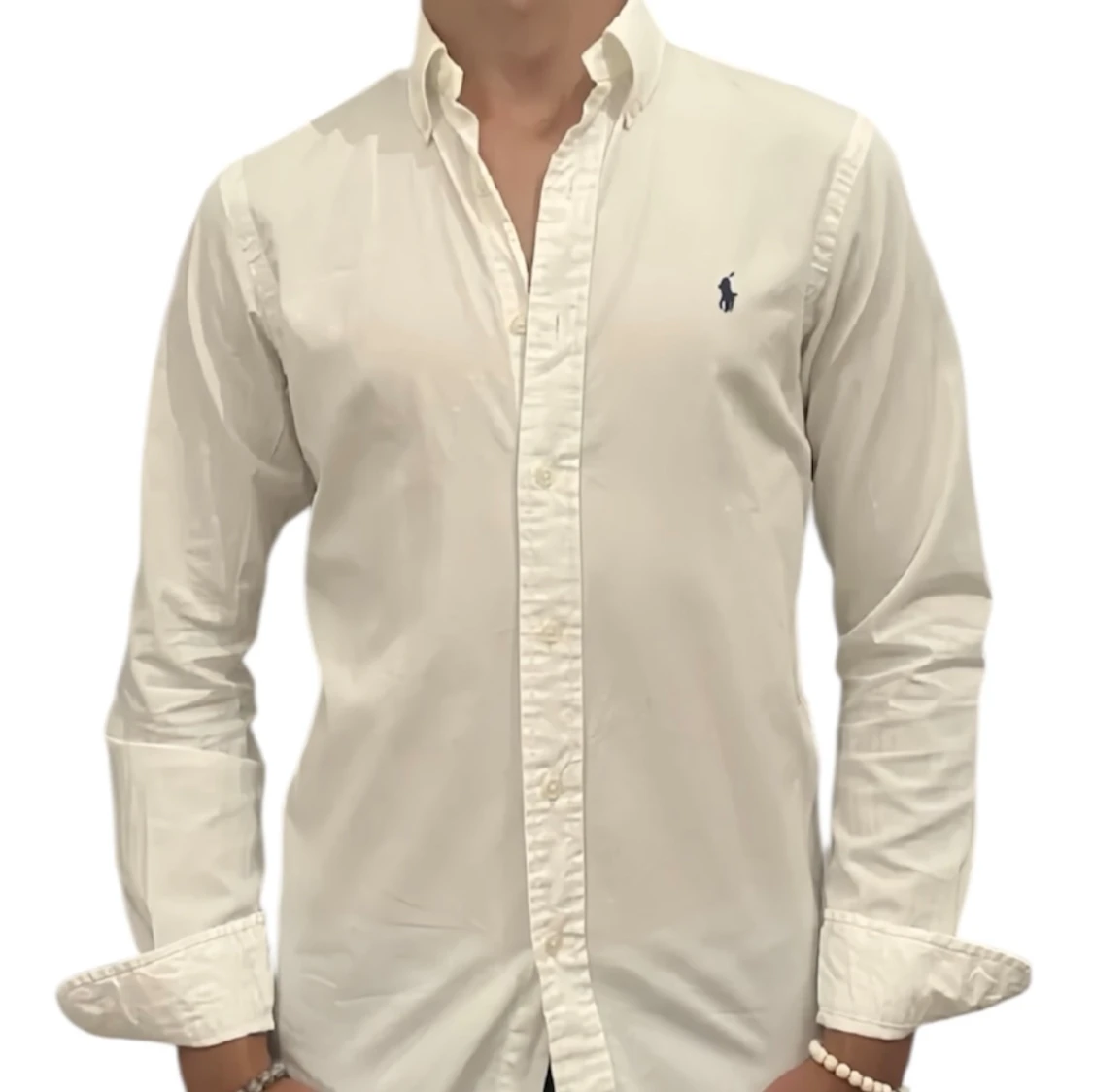 Klassisk vit skjorta från Ralph Lauren med blå broderad logga på bröstet. Skjortan har lång ärm, knappar hela vägen och är tillverkad i 100% bomull. Snygg passform och tidlös stil som funkar till allt. Storlek 20 - motsvarar S