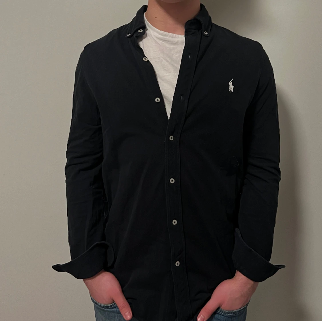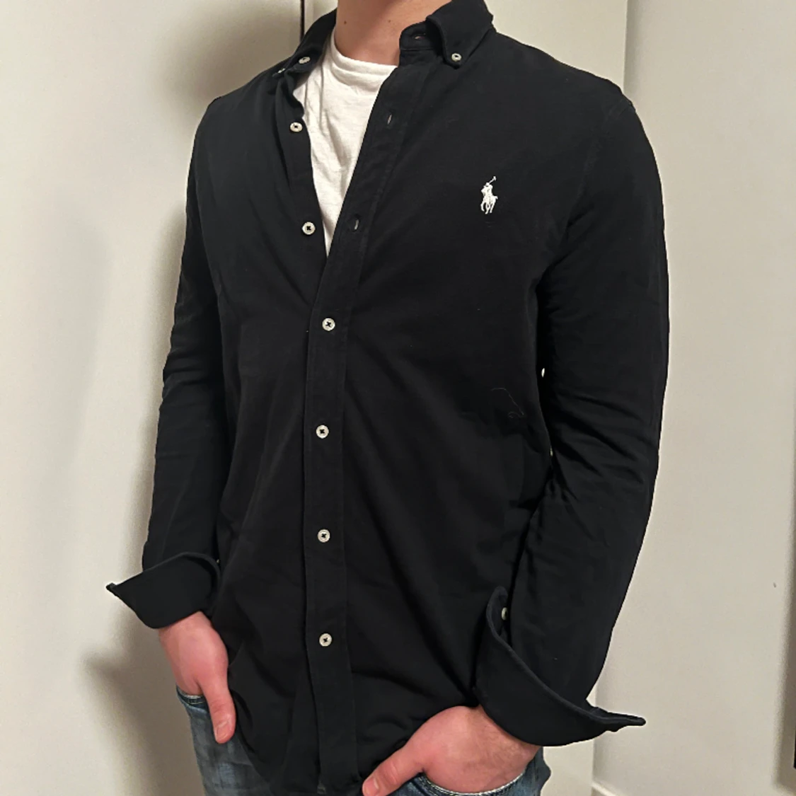 Tjena, säljer nu denna skit snygga skjorta från Ralph Lauren | Storleken är M | Färgen är svart och skicket är 8,5/10 | Modellen är ca 181 cm | Hör gärna av dig vid minsta lilla fundering 😊
