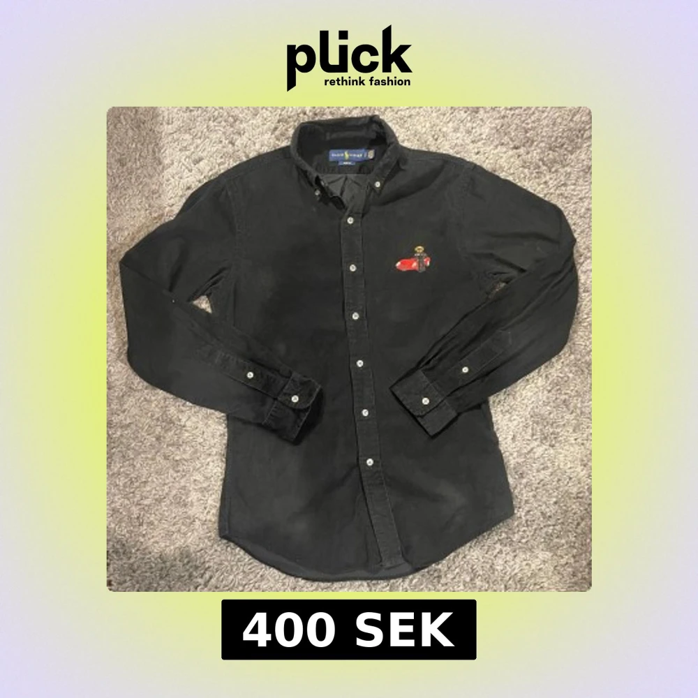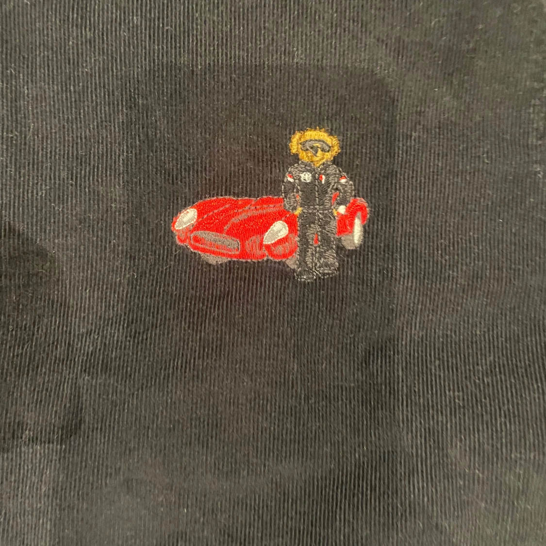 Snygg svart skjorta från Ralph Lauren med broderad detalj av en röd bil och en figur på bröstet. Skjortan har en slim fit passform och långa ärmar med knappar. Perfekt för en stilren look.