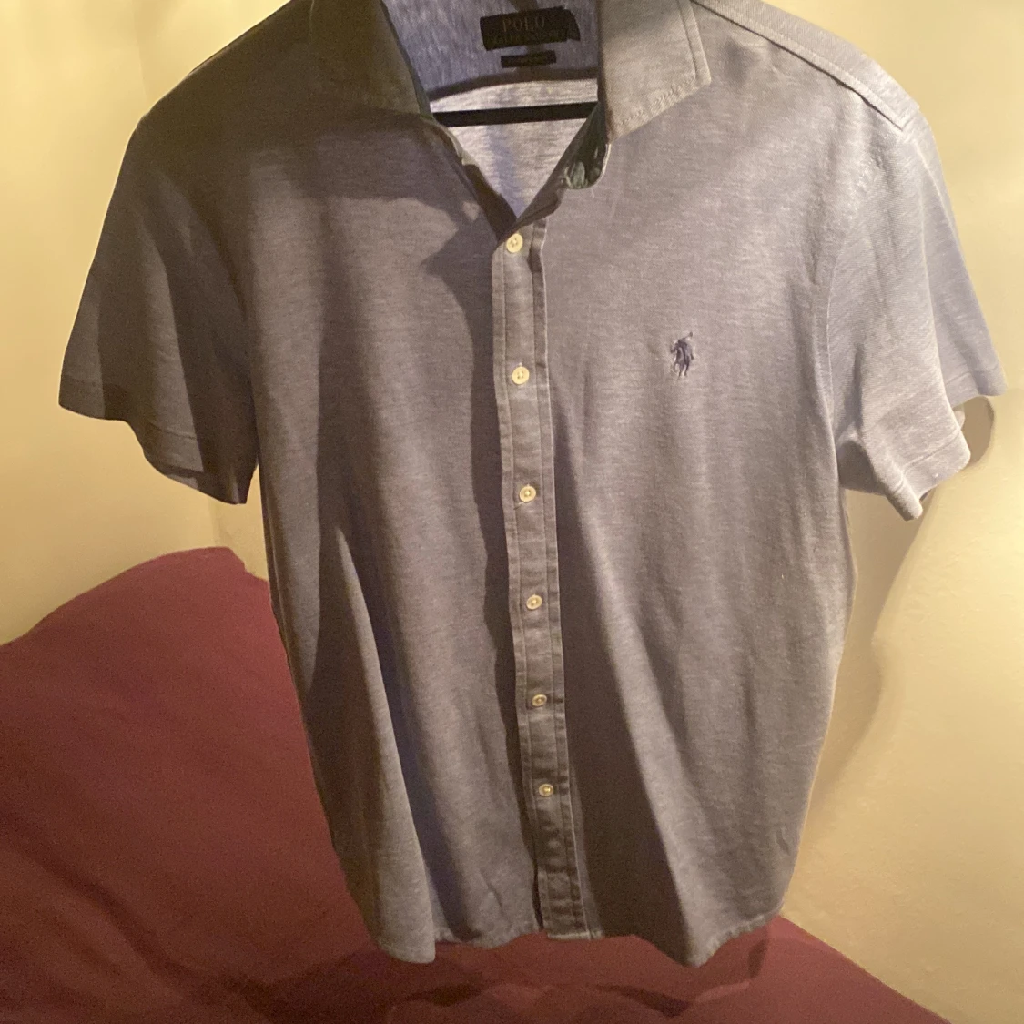 Snygg grå kortärmad skjorta från Ralph Lauren i en custom slim fit. Skjortan har knappar framtill och en liten broderad logga på bröstet. Perfekt för en stilren look.