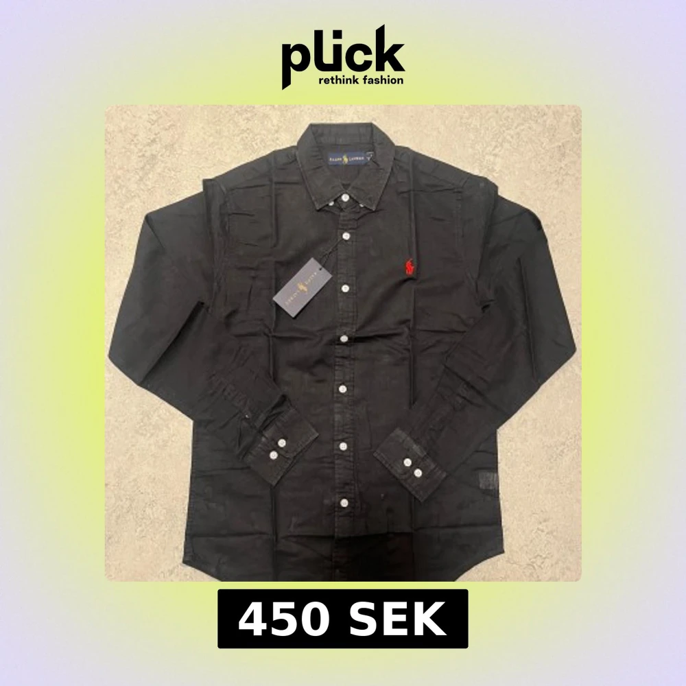 Svart skjorta från Ralph Lauren med klassisk krage och vita knappar framtill. På bröstet finns den ikoniska röda Polo-loggan broderad. Skjortan är tillverkad i bomull och har lång ärm. Perfekt för dig som gillar stilrena och tidlösa plagg. Byten funkar.