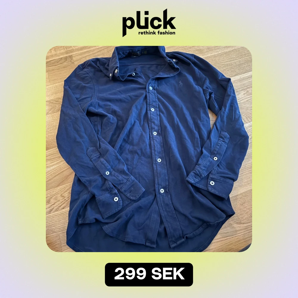 Säljer en snygg blå långärmad skjorta från Ralph Lauren i storlek S. Skjortan är i bomull och har klassiska knappar framtill. Perfekt för både vardag och festliga tillfällen. Den har en broderad logga på bröstet som ger en stilren touch. Passar perfekt till jeans eller chinos!