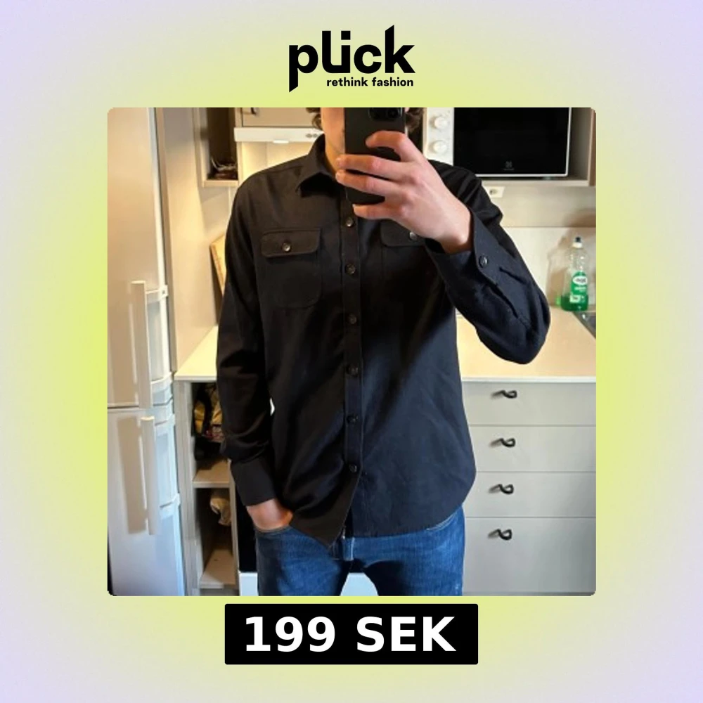Snygg svart långärmad skjorta med knappar framtill och två bröstfickor med lock. Perfekt för en stilren look. Passar bra till jeans eller chinos. Nästan aldrig använd. Från John Henric. Funkar både som skjorta och overshirt. Nypris ligger lite över tusenlappen, mitt pris 199