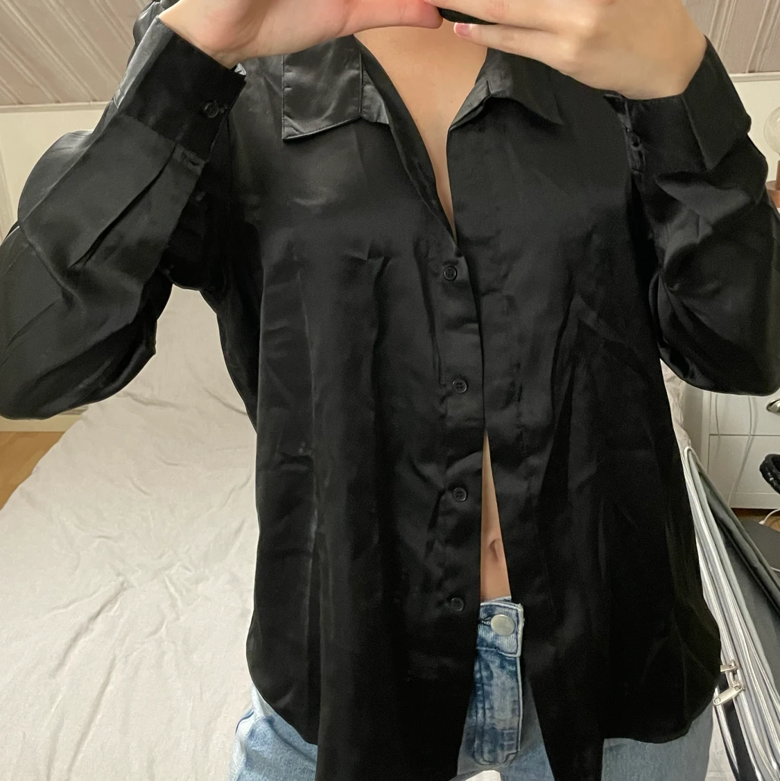 Svart skjorta i silke (fake)