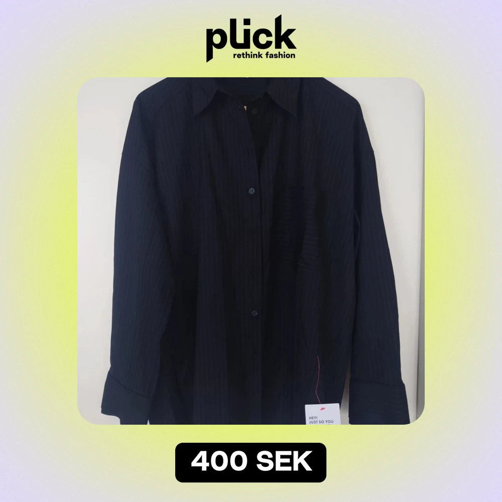 Helt oanvänd svart skjorta från Topshop med tunna vita ränder och ficka på bröstet. Prislappar kvar. Originalpris 709 sek.