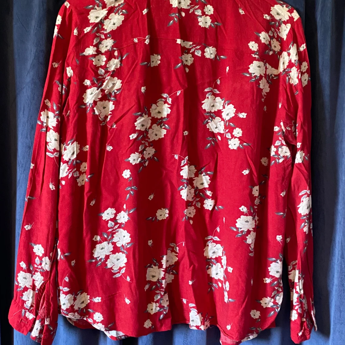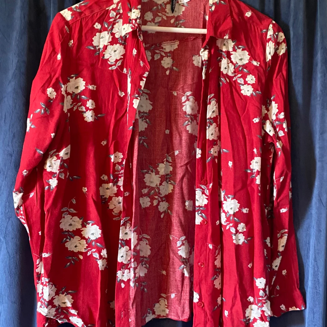En röd skjorta med vita blommor