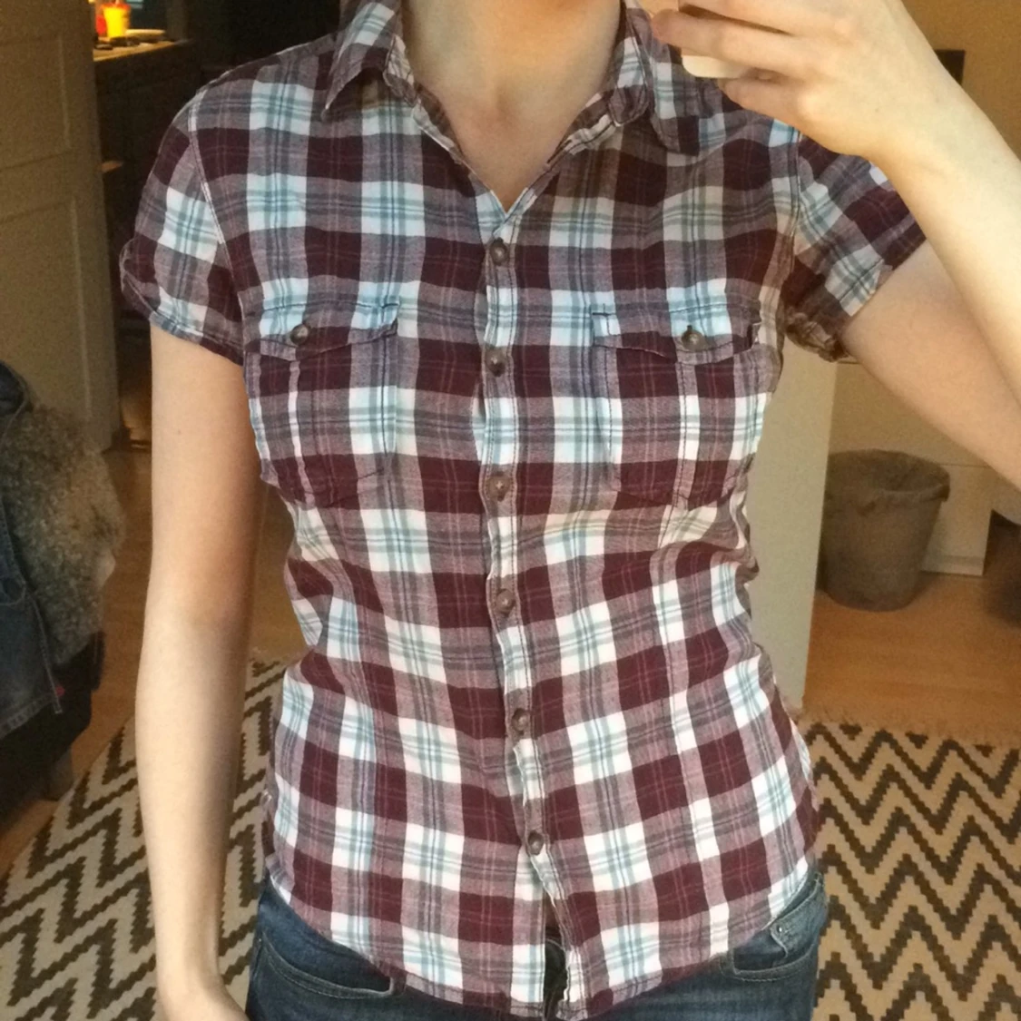 Kortärmad skjorta från HM L.O.G.G. Två fickor och ganska figursydd. Skön att ha på sig och fin till svarta byxor. Köparen betalar frakt!
