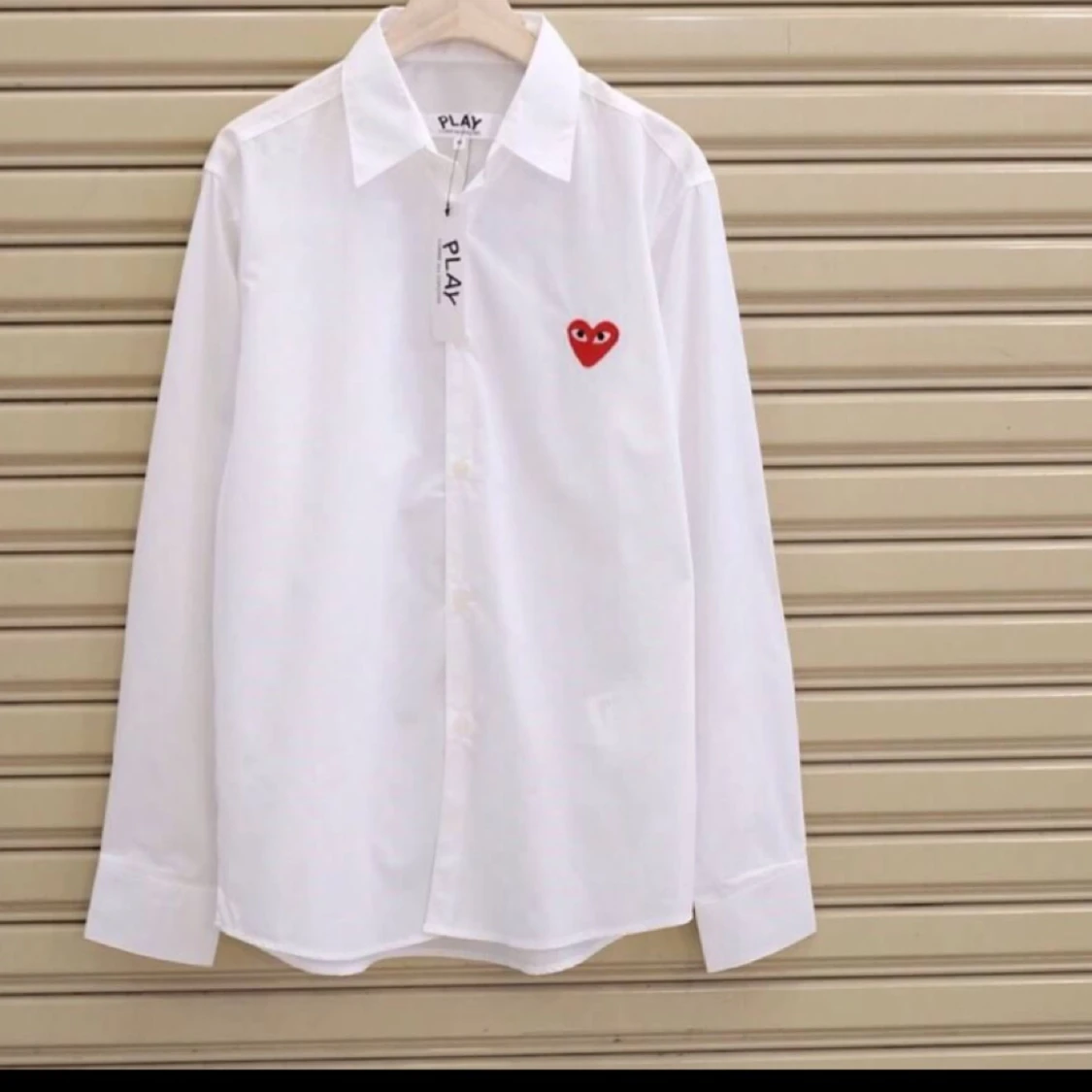 Vit PLAY skjorta med klassiska hjärta. Väldigt skönt och bra skick. Storlek S och använd den inte längre.