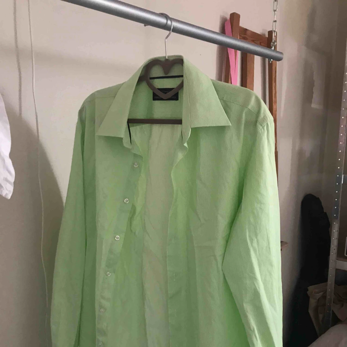 Smårandig skjorta i vitt och grönt. Använd kanske två gånger! Betalandet via swish innan paketet skickas och frakten (63kr) ingår i priset❤️