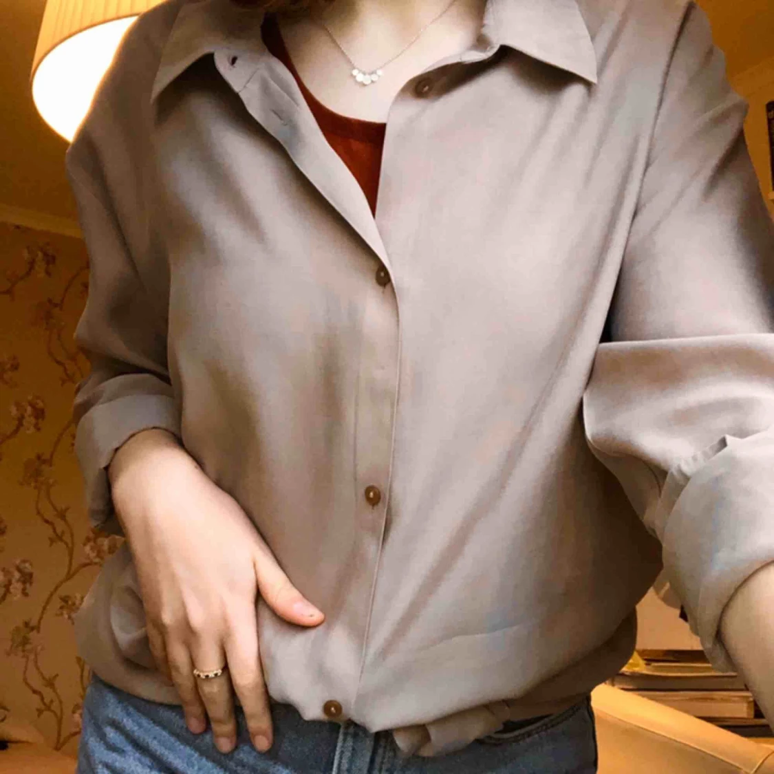 Superfin skjorta från weekday. Lång modell som går att styla på många sätt! Ljusbrun färg. Storlek M. Säljer den för att jag äger alldeles för många skjortor och hoppas att den får komma till användning hos någon annan! :)