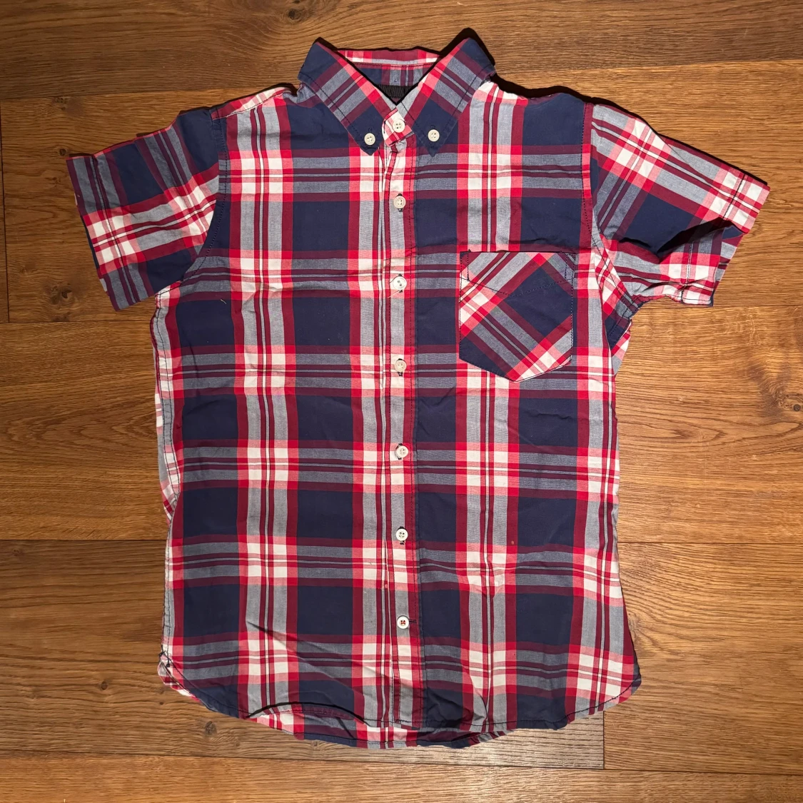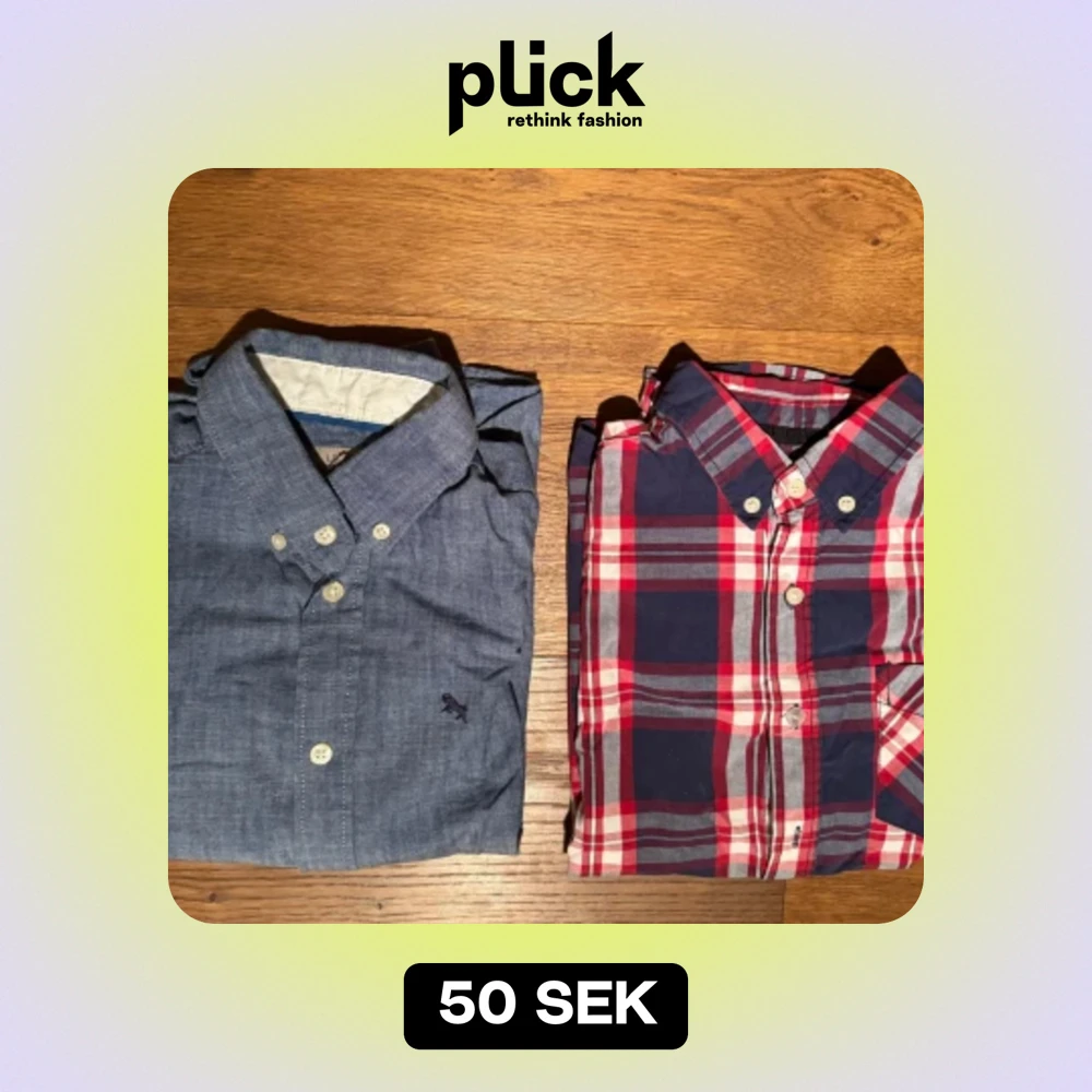 Två snygga skjortor i stl 140 Långärmad i denim tyg från Lindex/logg 50kr Kortärmad rutig skjorta stl 134/140. 50kr Båda i mycket fint skick!