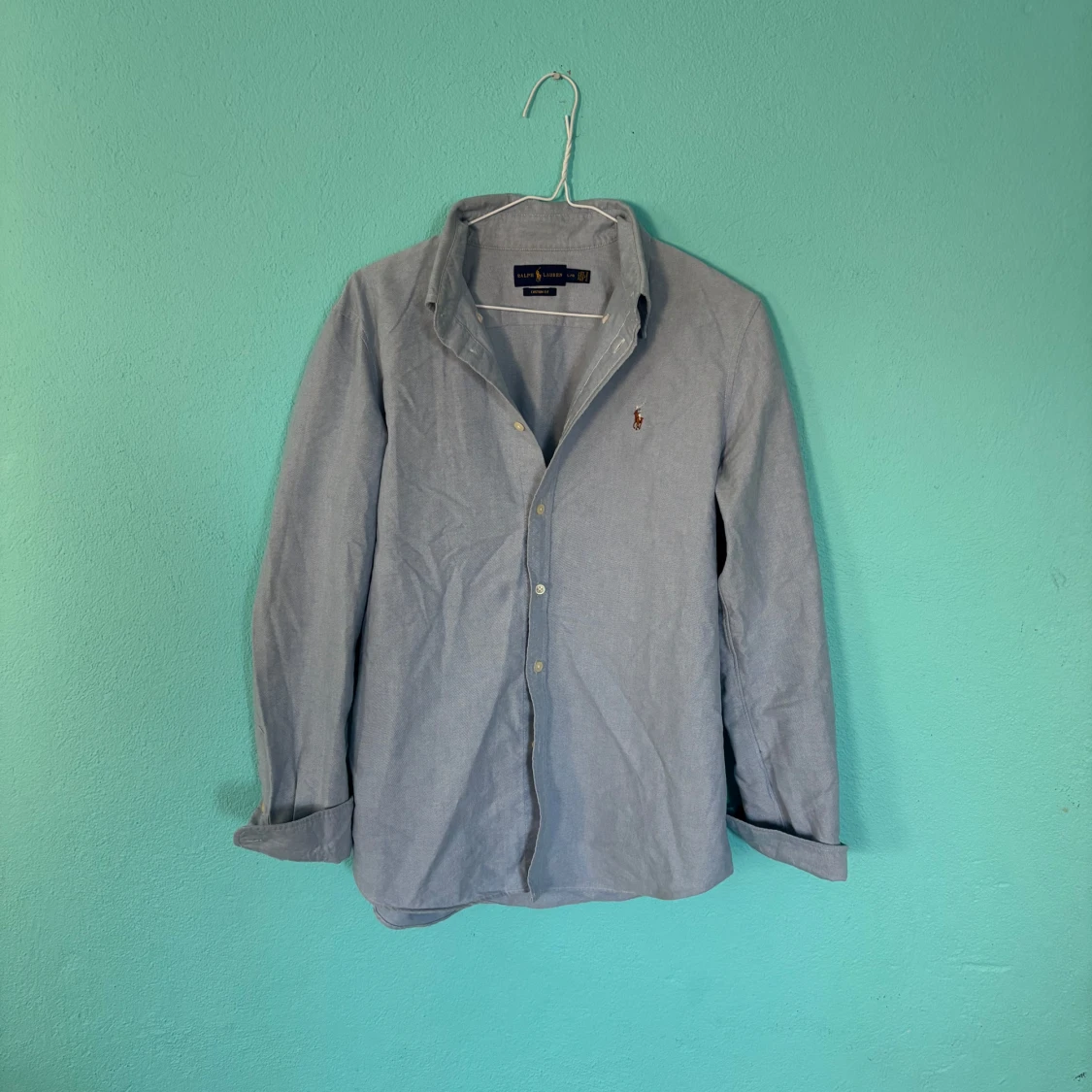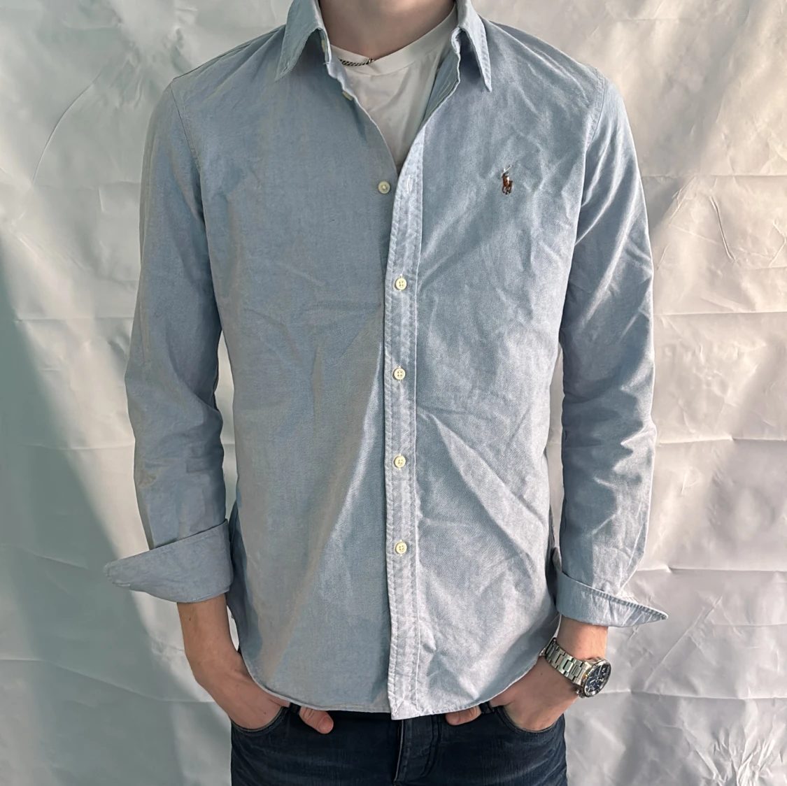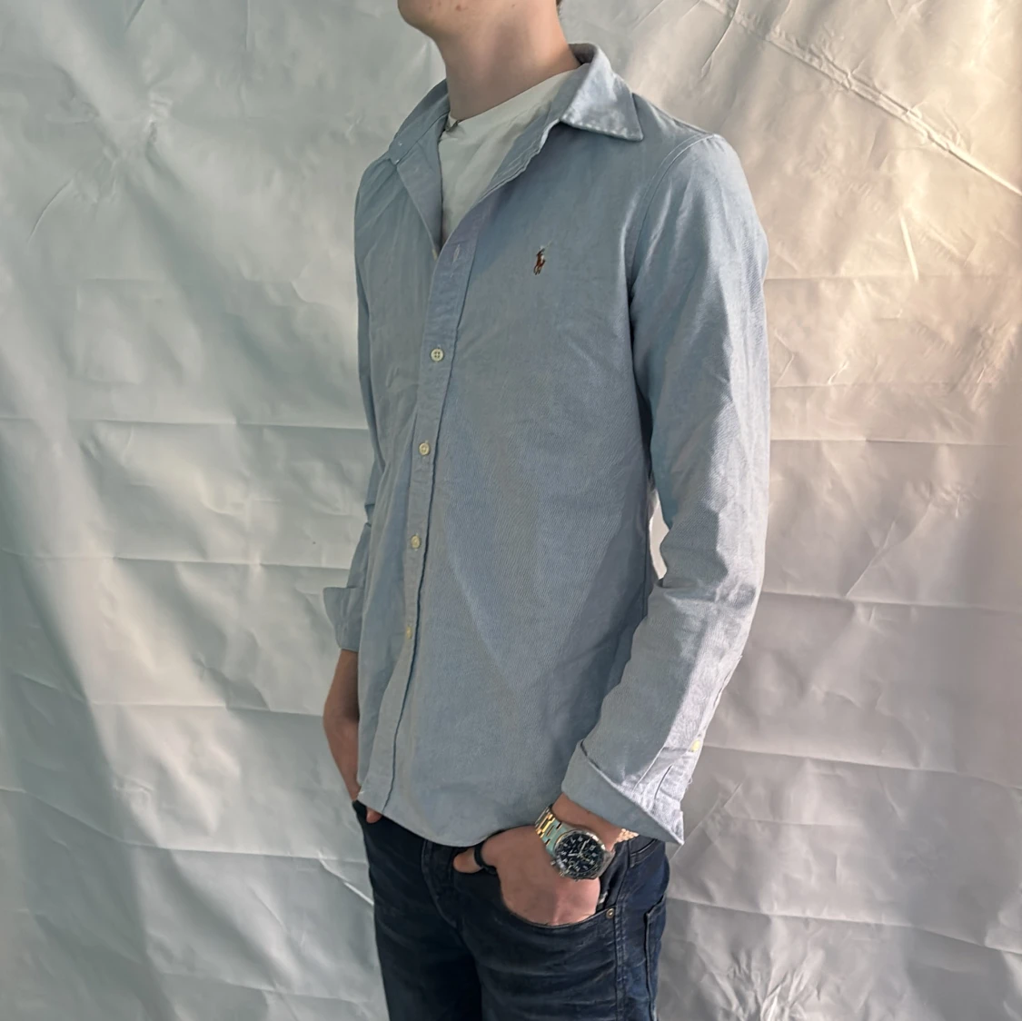 Snygg ljusblå skjorta från Ralph Lauren med klassisk krage och broderad logga på bröstet. Skjortan har långa ärmar och knappar framtill. Perfekt för en stilren look.
