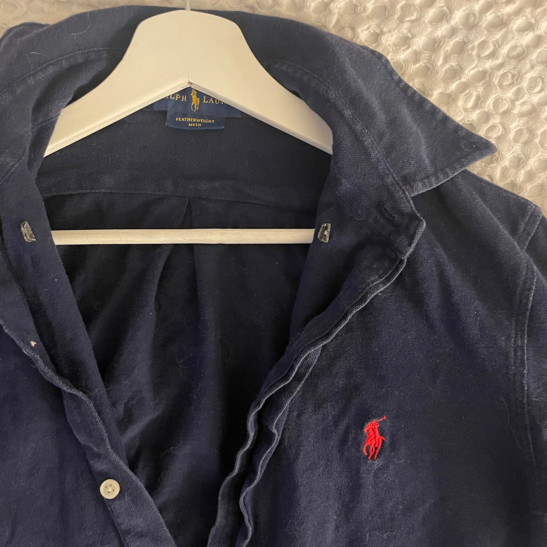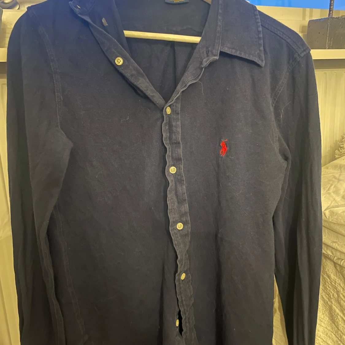 Snygg mörkblå skjorta från Ralph Lauren med klassisk krage och knappar. Den har en broderad röd logotyp på bröstet och är tillverkad i ett lätt och bekvämt material. Perfekt för sommaren elelr våren! skriv för fler frågor/bilder 👍