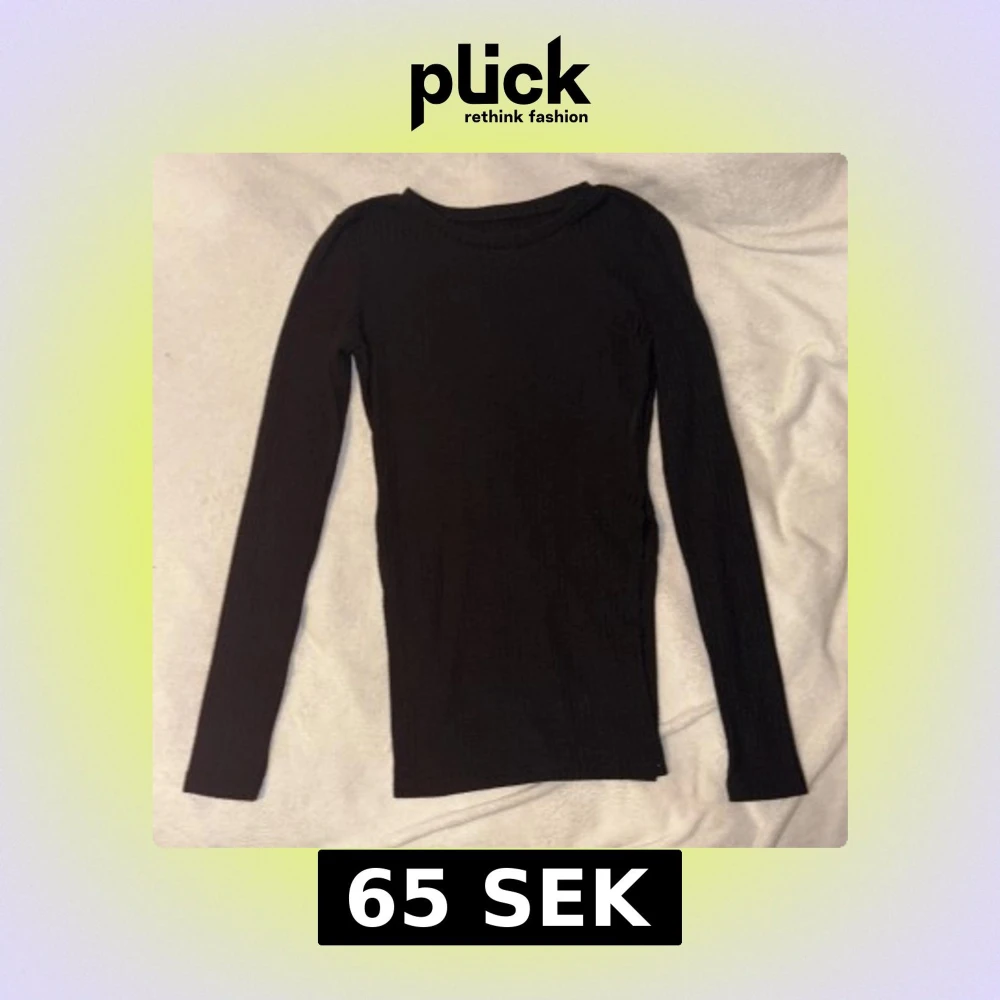 Säljer en svart långärmad topp med rund halsringning. Den har två små slits längst ner vid sidan. Materialet är mjukt, stretchigt och bekväm ✨ Passar för S/XS