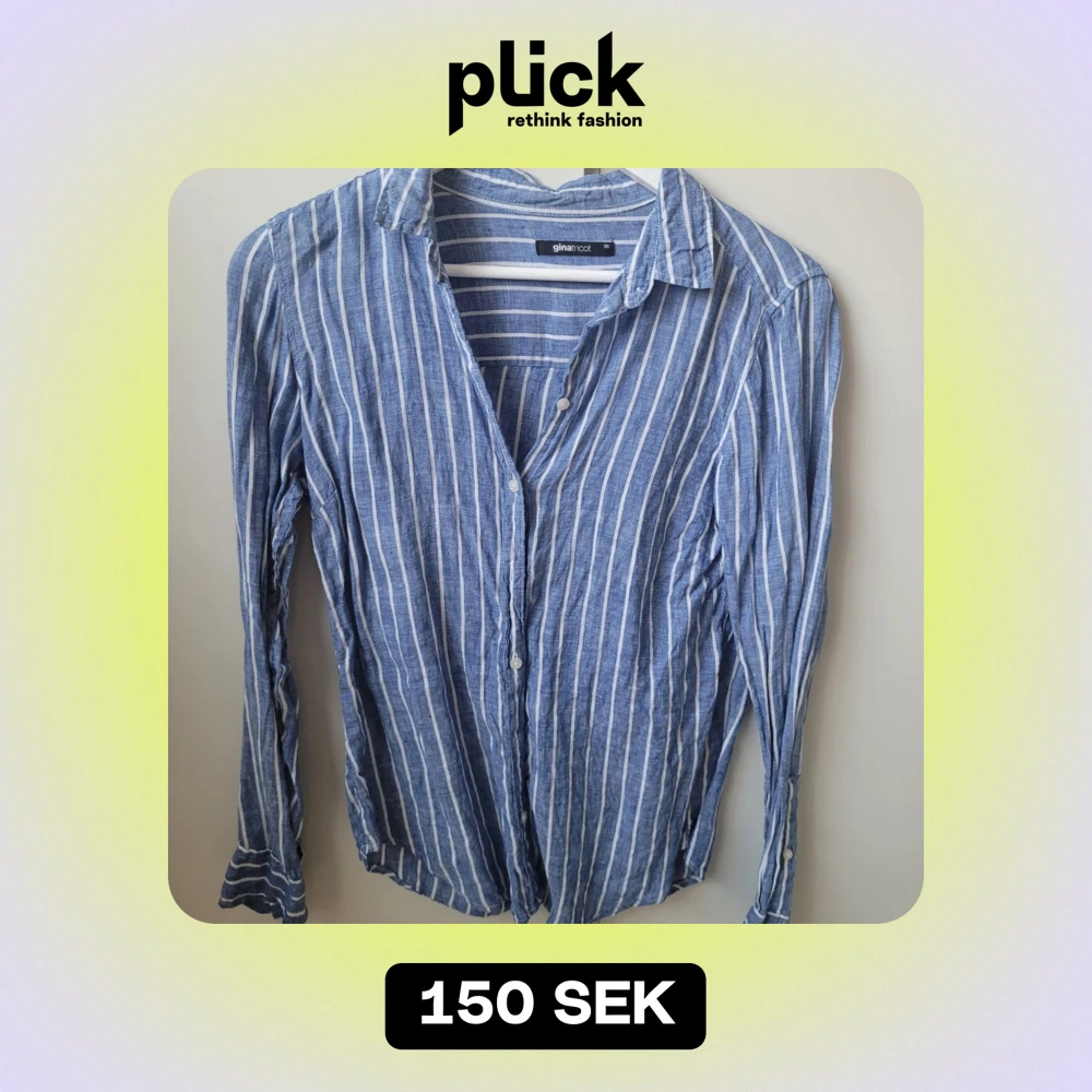 Säljer en snygg blå- och vitrandig skjorta från Gina Tricot i storlek 36. Skjortan har långa ärmar och knappar framtill. Perfekt för både vardag och festliga tillfällen. Den är i mycket bra skick och gjord av ett skönt material som känns lätt mot huden.