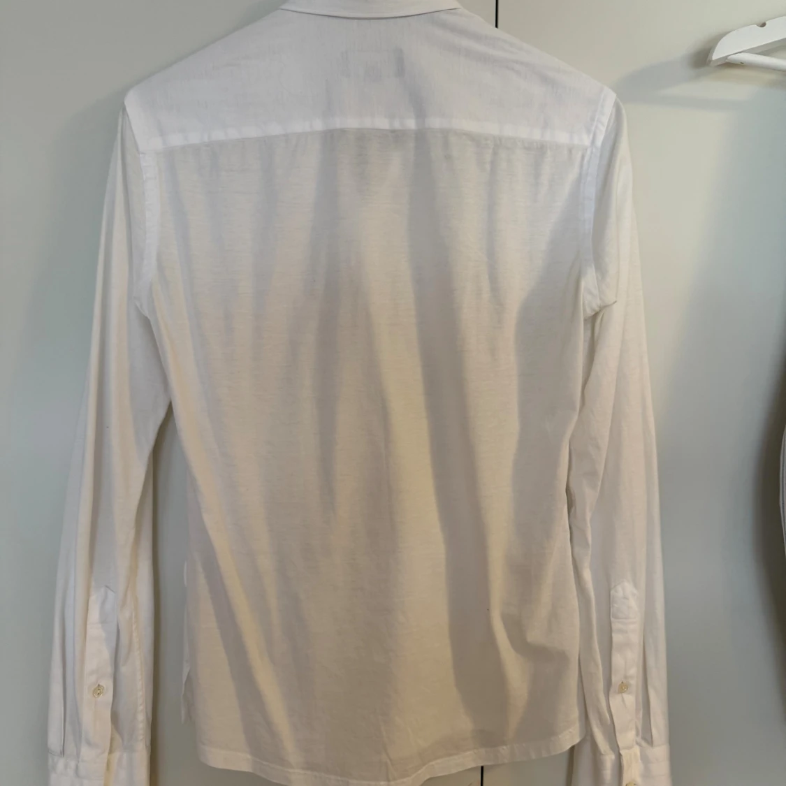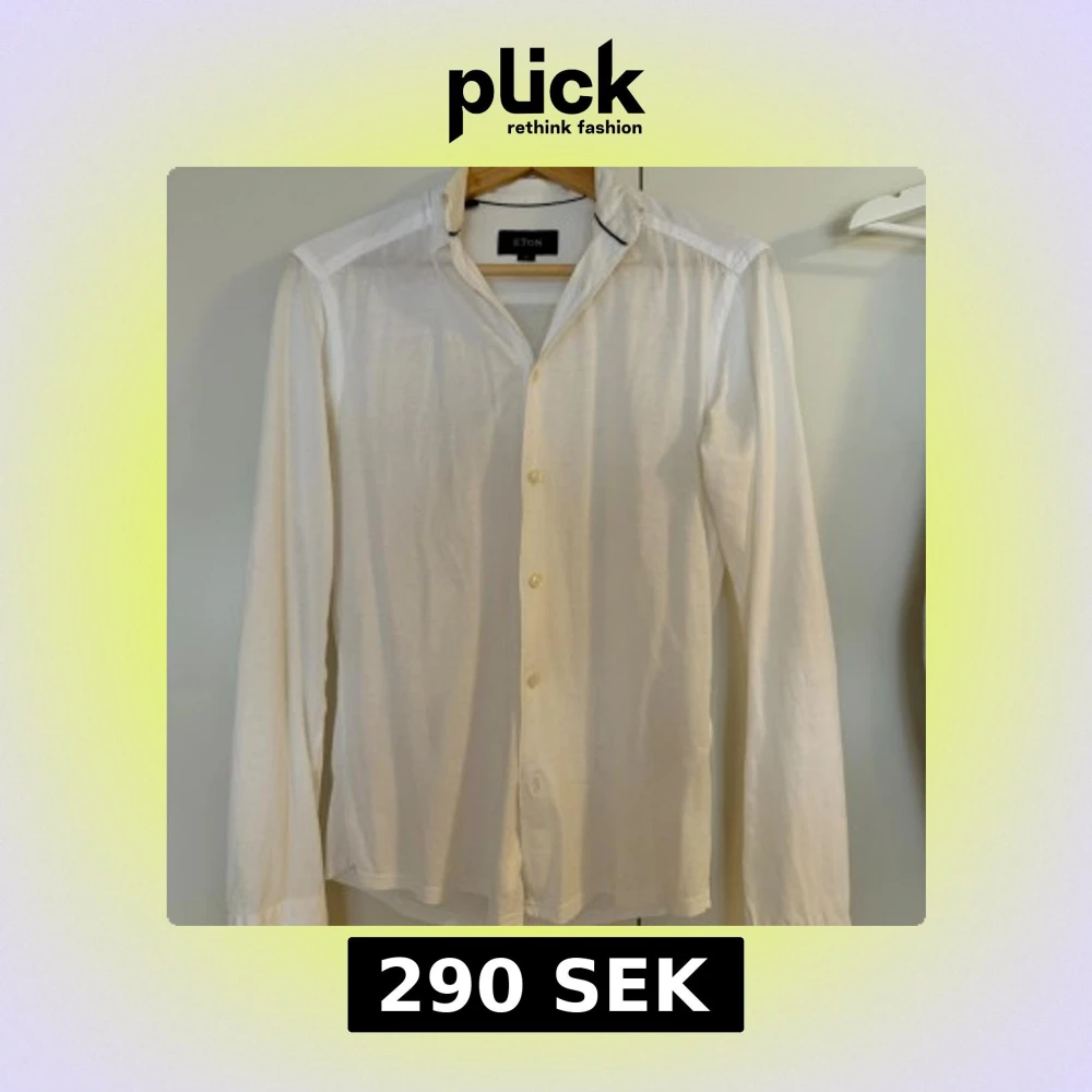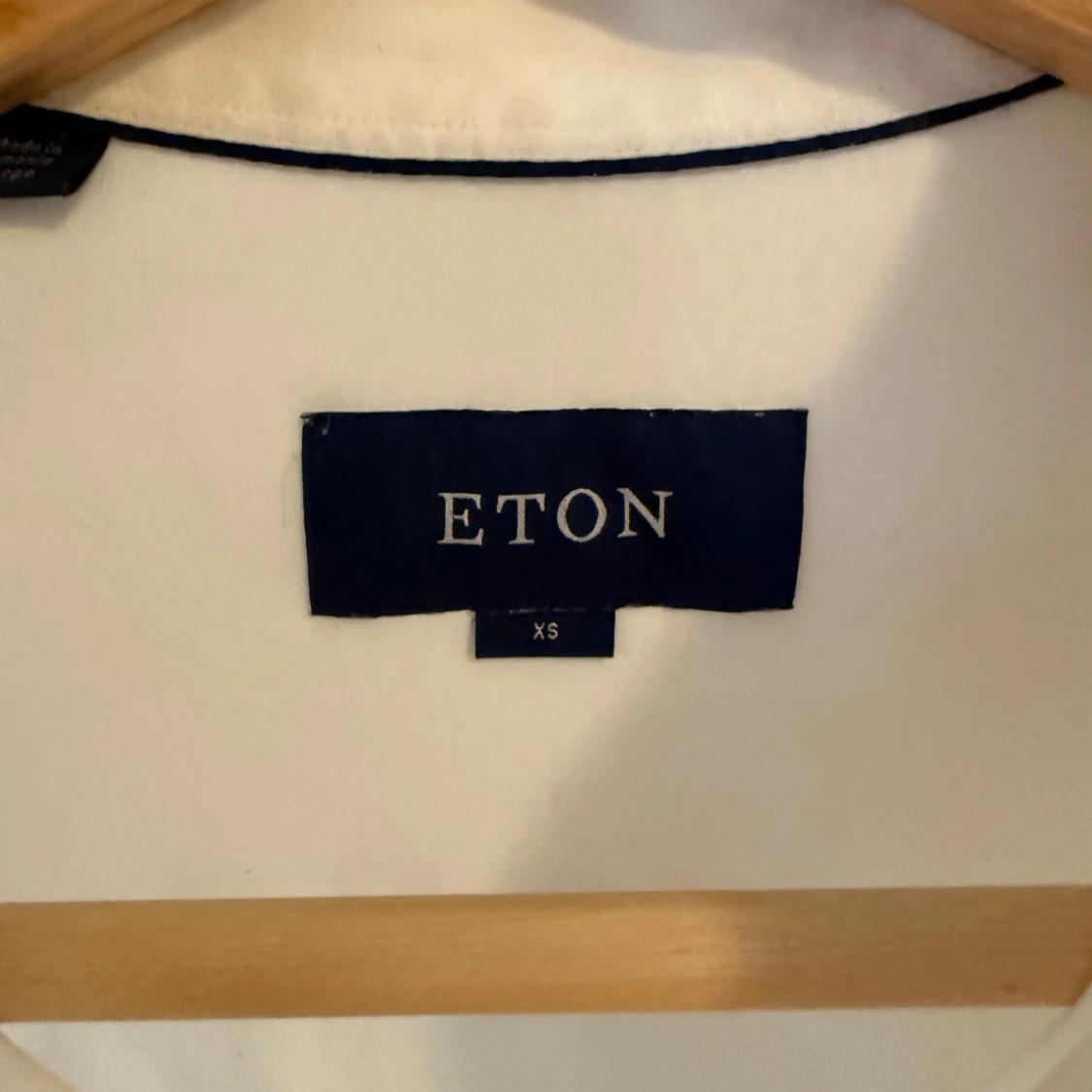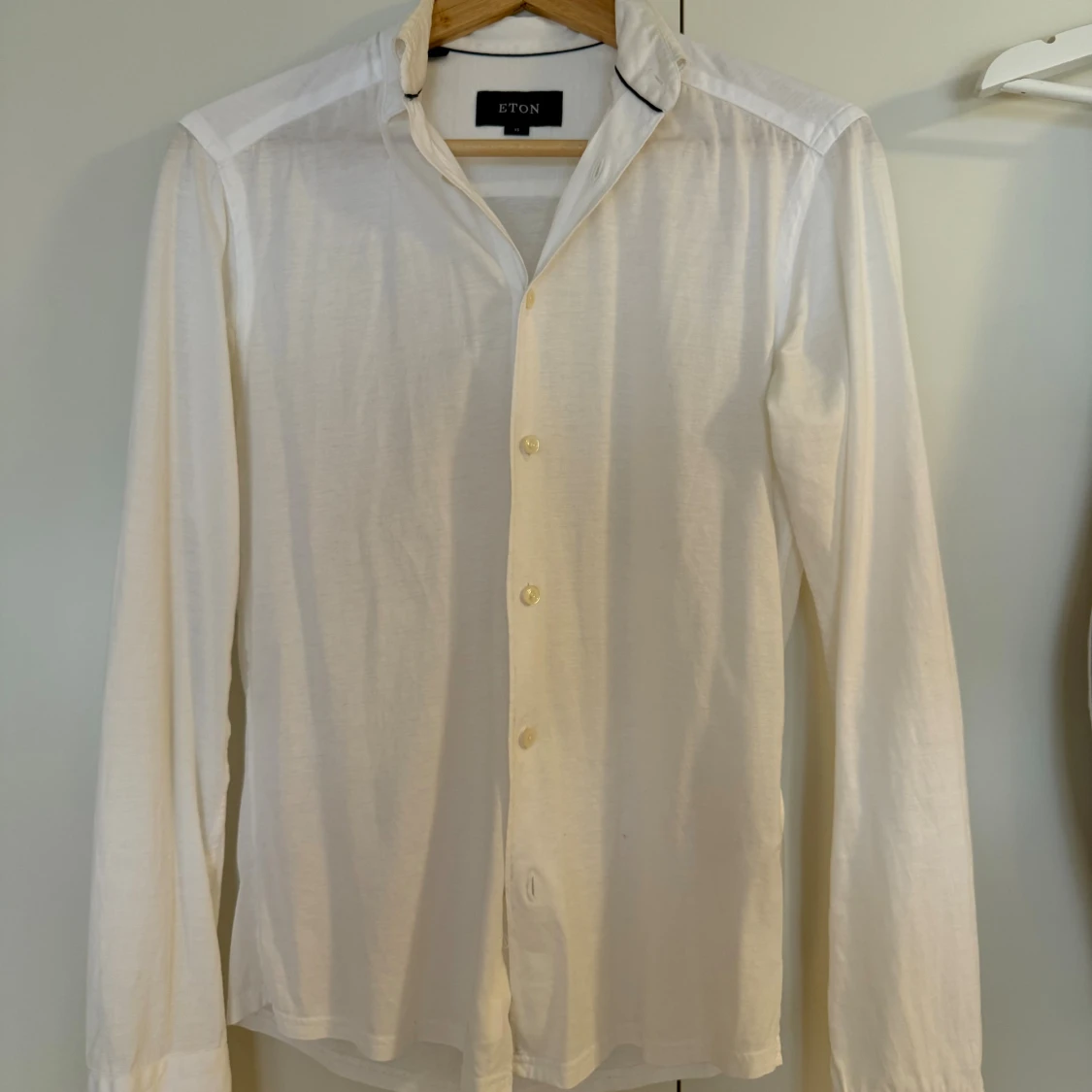 Klassisk vit skjorta från Eton i storlek XS. Skjortan har lång ärm, knappar framtill och en stilren krage med en tunn mörk detalj. I tunnare material, perfekt för varmare dagar, eller under en annan tröja.