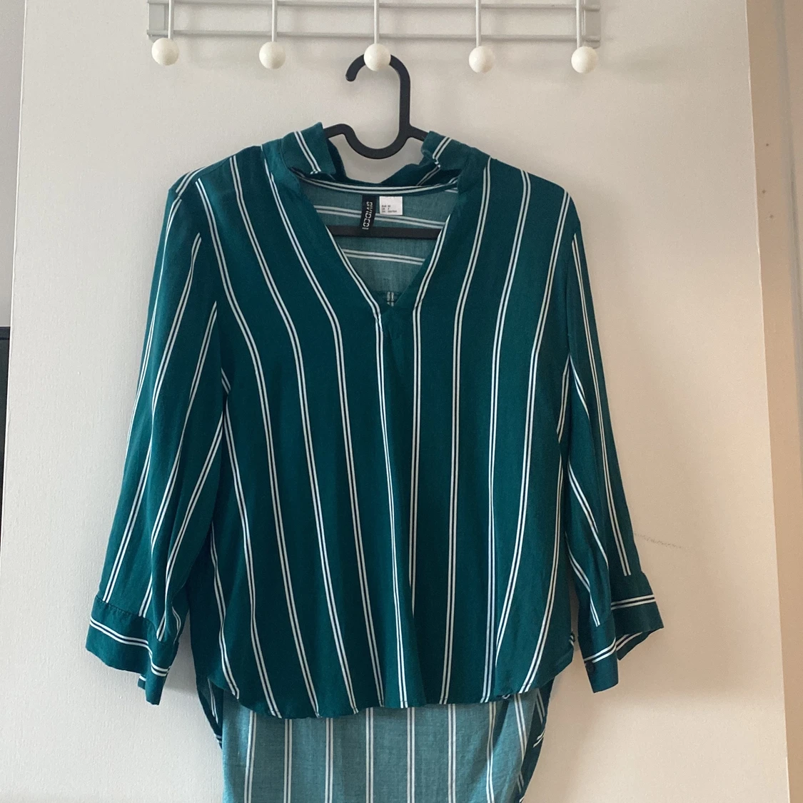 En randig 3/15 ärmar i en cool grön färg! Storlek 32 men skulle säga att den funkar mellan 32-36! Från hm och aldrig använd!