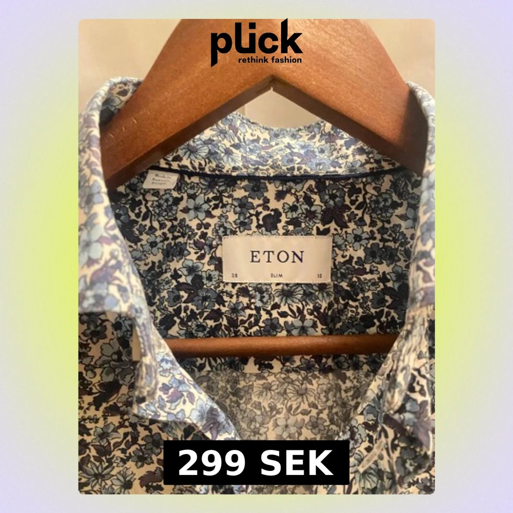Snygg skjorta från Eton med blommigt mönster i blå och lila toner på vit botten. Slim fit-modell med klassisk krage och knappar framtill. Tillverkad i mjuk bomull som känns skön mot huden. Perfekt för dig som gillar detaljer och vill sticka ut lite extra. Pris kan diskuteras vid snabb och smidig affär. Perfekt julklapp 🎄🎁. Hör av er vid minsta frågan