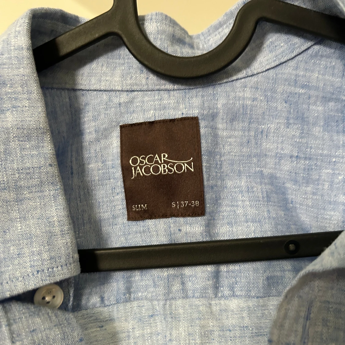 Helt oanvänd och ny Oscar Jacobsson linneskjorta köpt i januari inför sommaren Passar mig inte längre Storlek S Slimfit passform Nypris 1300 priset är ej hugget i sten