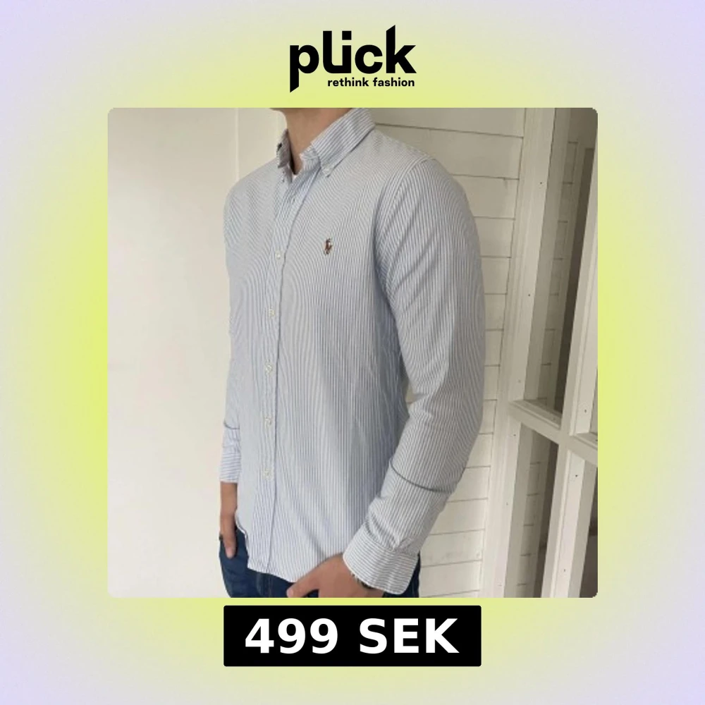 En riktigt snygg randig ralph lauren skjorta perfekt till sommaren. Skjortan är i storlek M slim fit och den är 74 cm lång och 49 cm bred. Den är i mycket bra skick, hör av er vid frågor.
