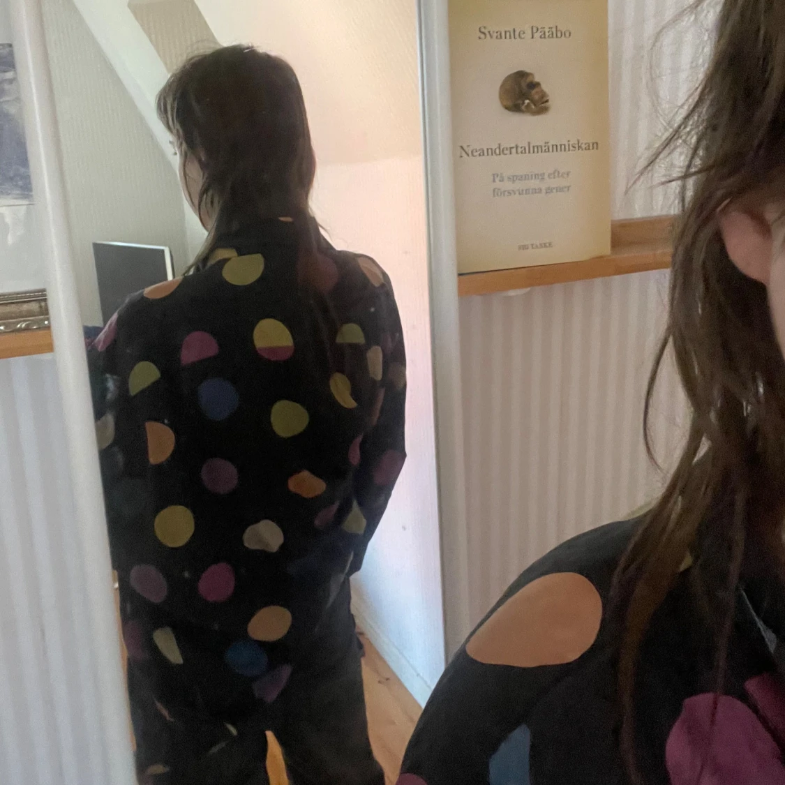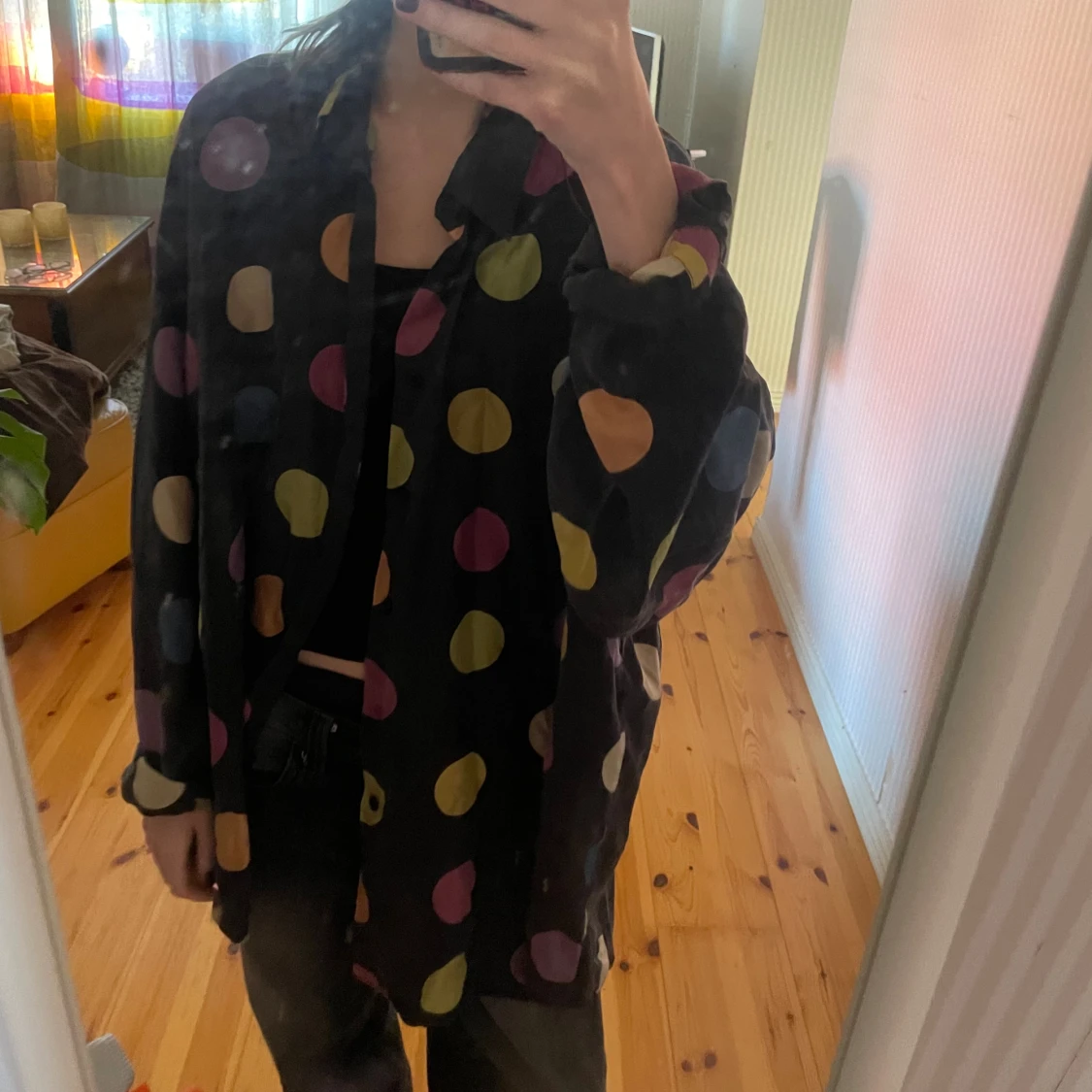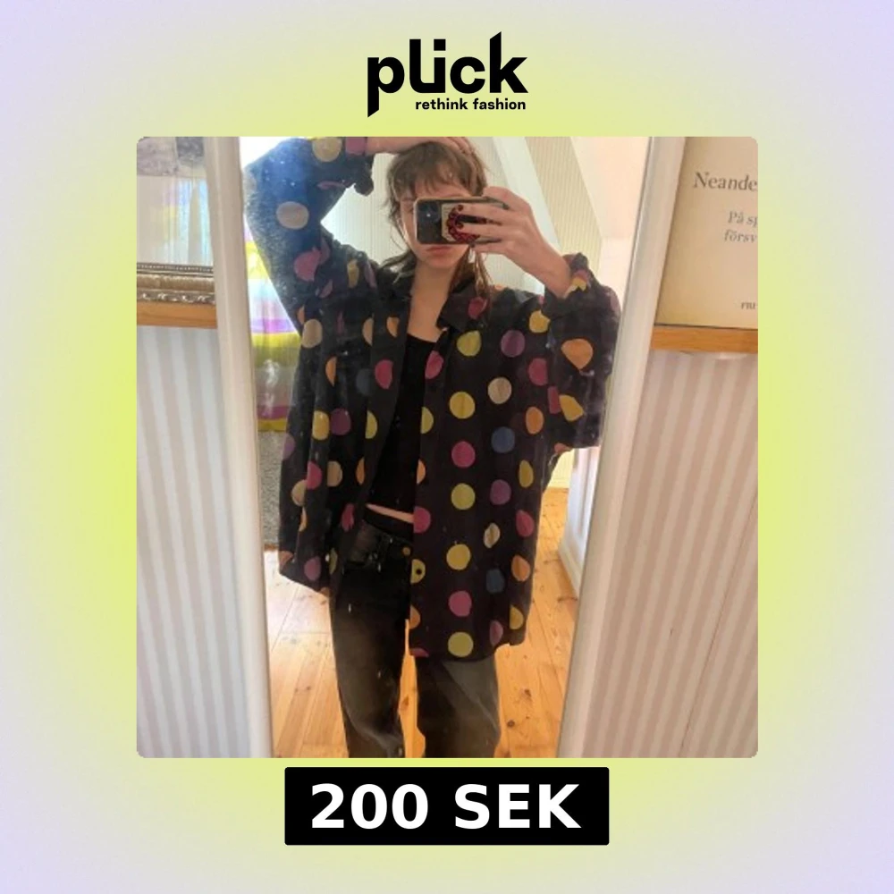En prickig skjorta som är mer som en sommarsärk och går säkert att ha som en klänning. Se märke på bild 4. Har för mig att det är ett finskt designermärke men kan ha fel. Den har knappar så att man kan knäppa den!
