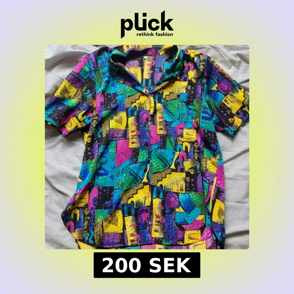 Färgglad skjorta från Depop som sitter som en klänning på mig som är en storlek small. Den har även axelvaddar. Brukar para ihop den med svarta strumpbyxor och svarta kängor