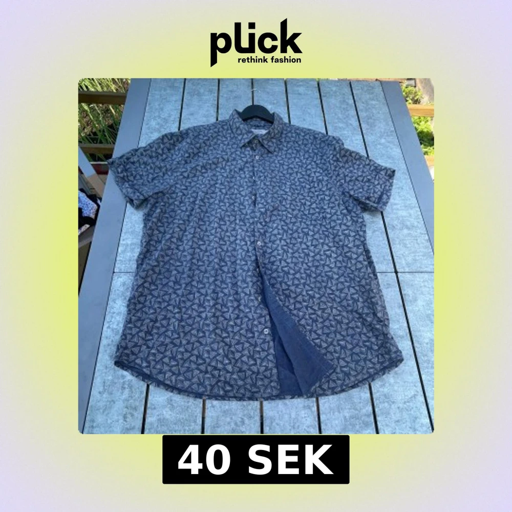 Snygg blå skjorta från Dressmann i storlek 3XL med vitt triangulärt mönster över hela plagget. Skjortan är tillverkad i en linnemix, har korta ärmar och klassisk krage. Perfekt för dig som gillar en avslappnad men stilren look.