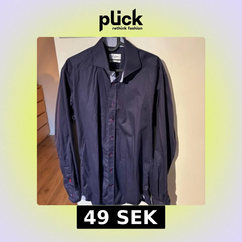 Snygg mörkblå skjorta från Stenströms i slim fit. Tillverkad av tvåfaldig super bomull för en lyxig känsla. Skjortan har långa ärmar och röda knappar som ger en fin kontrast. Perfekt för en stilren look.