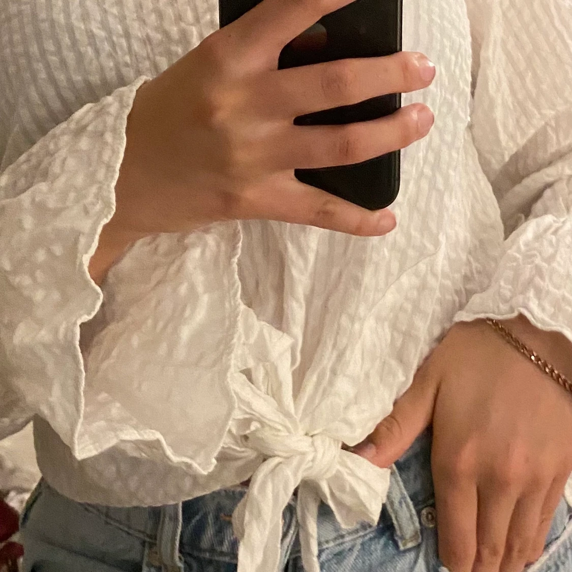 En söt skjorta i bra skick, aldrig använd. Fina detaljer och passar fint till ljusa jeans.