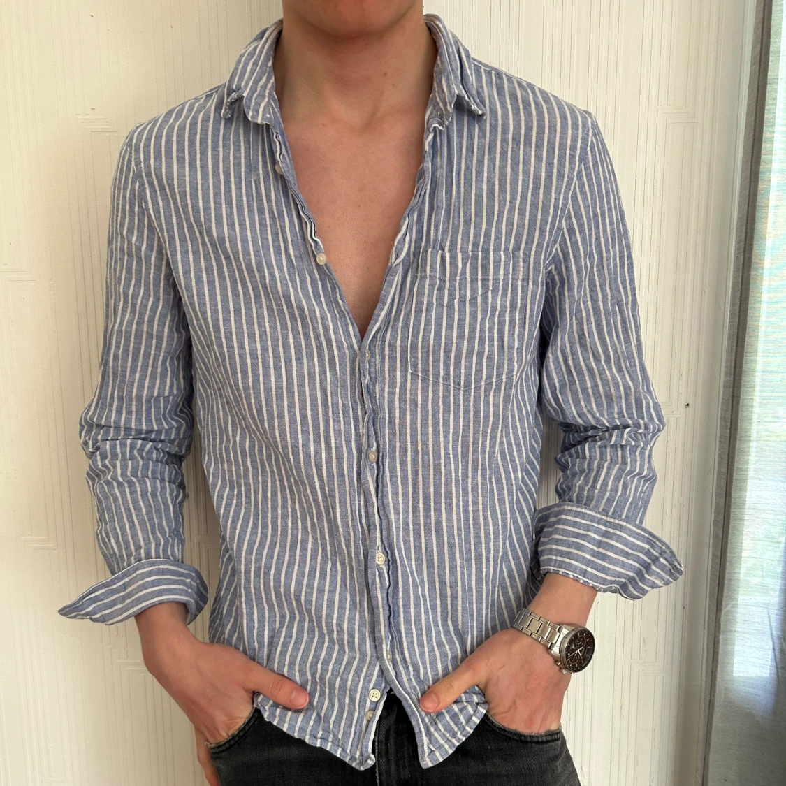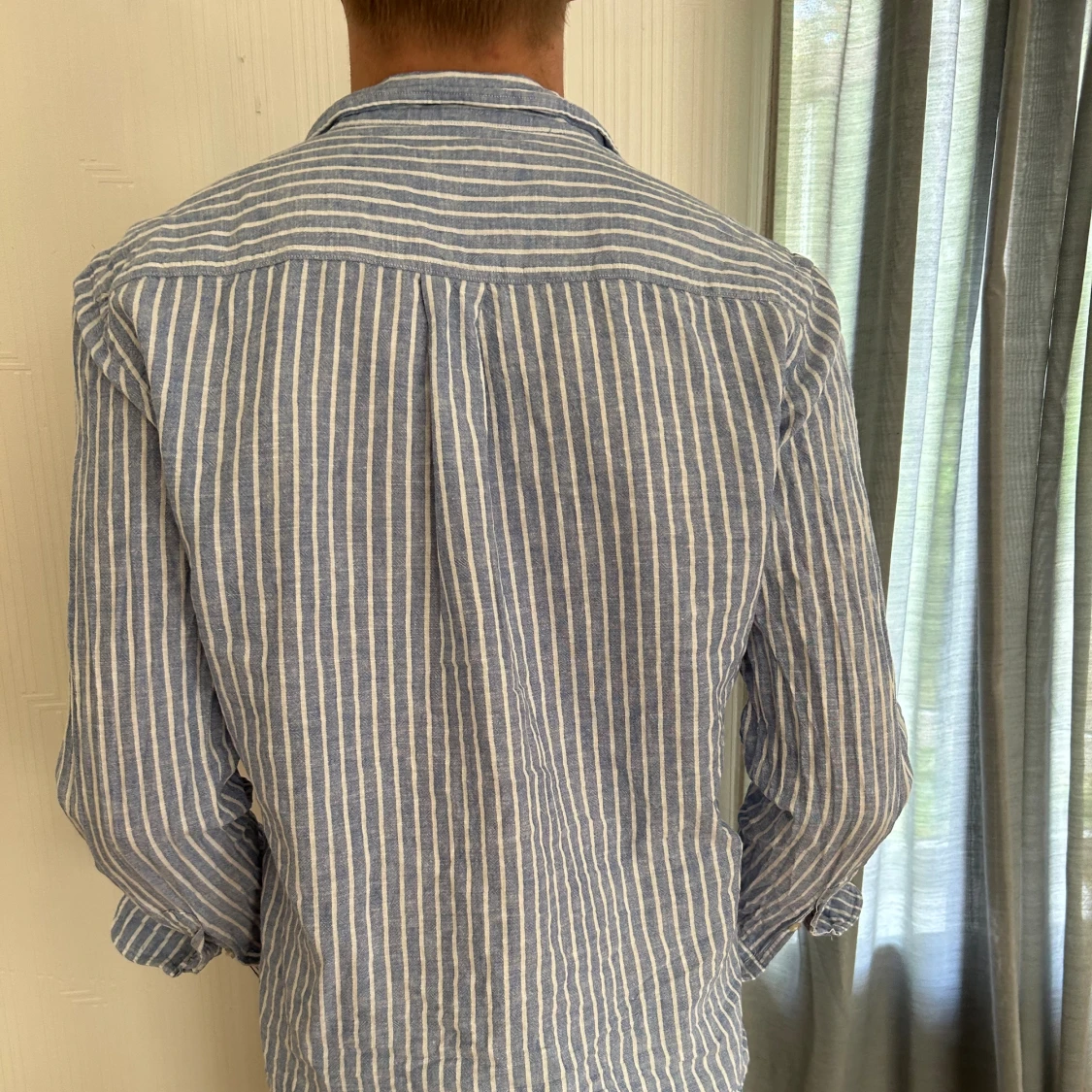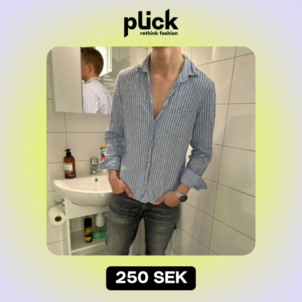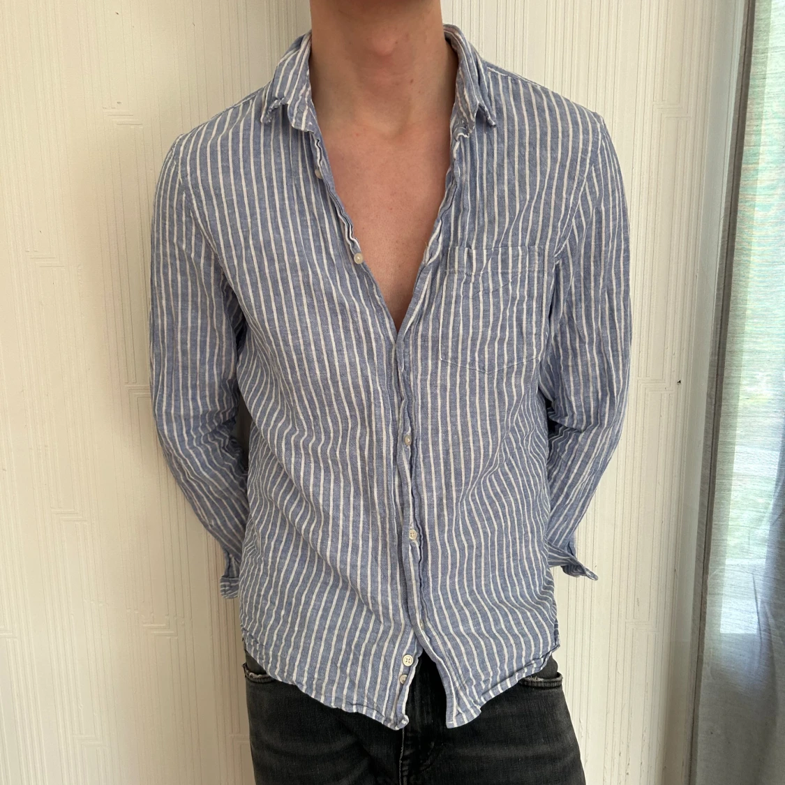 Säljer denna feta skjortan från Zara! Perfekt till sommaren. Passar som både S och XS! Färger blå och vit, modellen är 183.