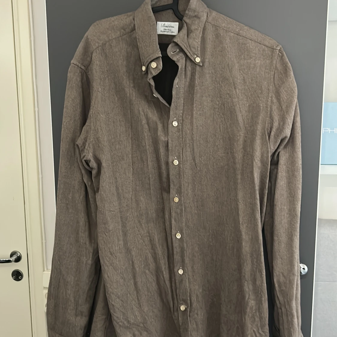 Snygg brun skjorta från Stenströms i fitted body-modell. Tillverkad i tvåfaldig super cotton som känns mjuk och lyxig. Klassisk krage, långa ärmar och knäppning framtill. Perfekt för dig som gillar stilrena och tidlösa plagg. Inte använd så mycket