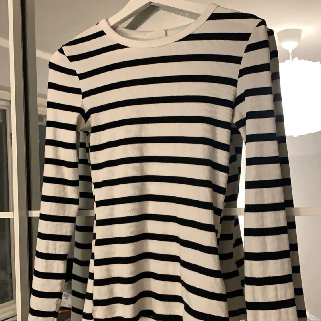 Säljer en stilren randig topp i svart och vit med långa ärmar. Perfekt för en casual look. Passar bra till jeans eller kjol. sitter tight i kroppen. 🤍