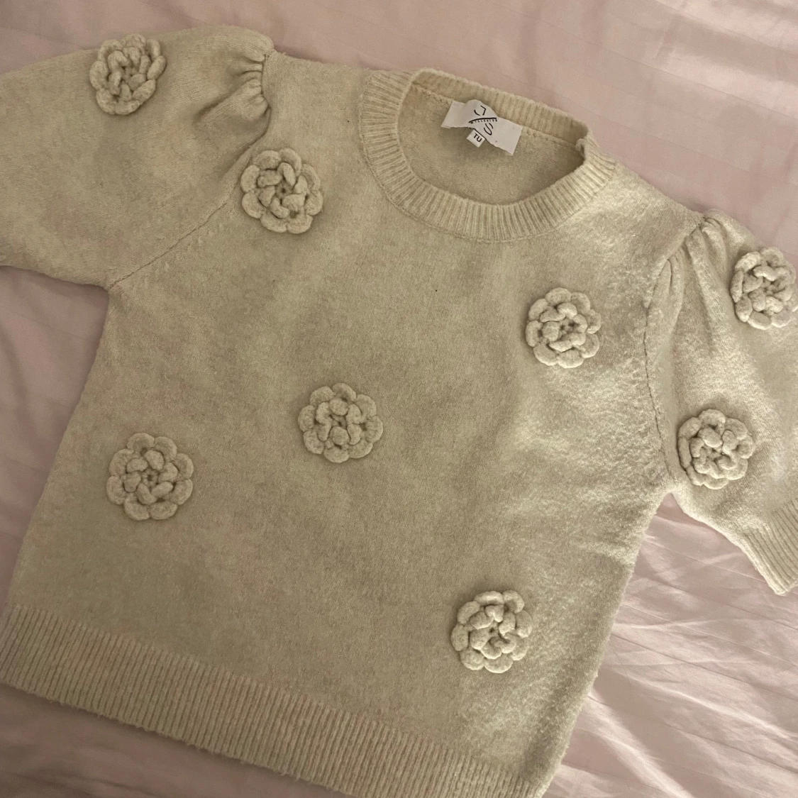 Säljer den här stickade tröjan med blommor i den mjukaste materialen💘
