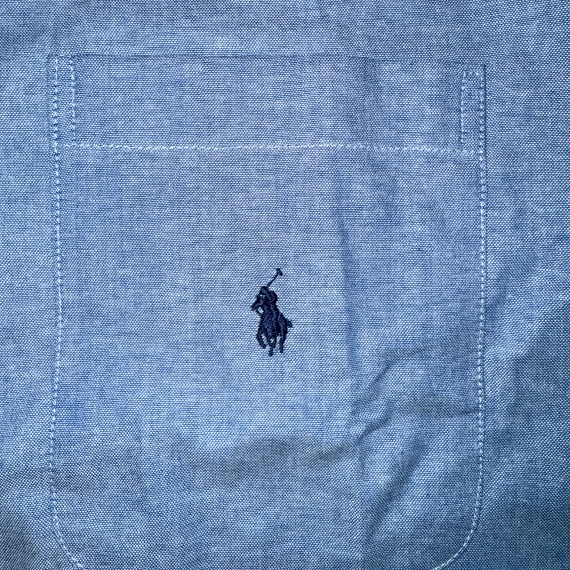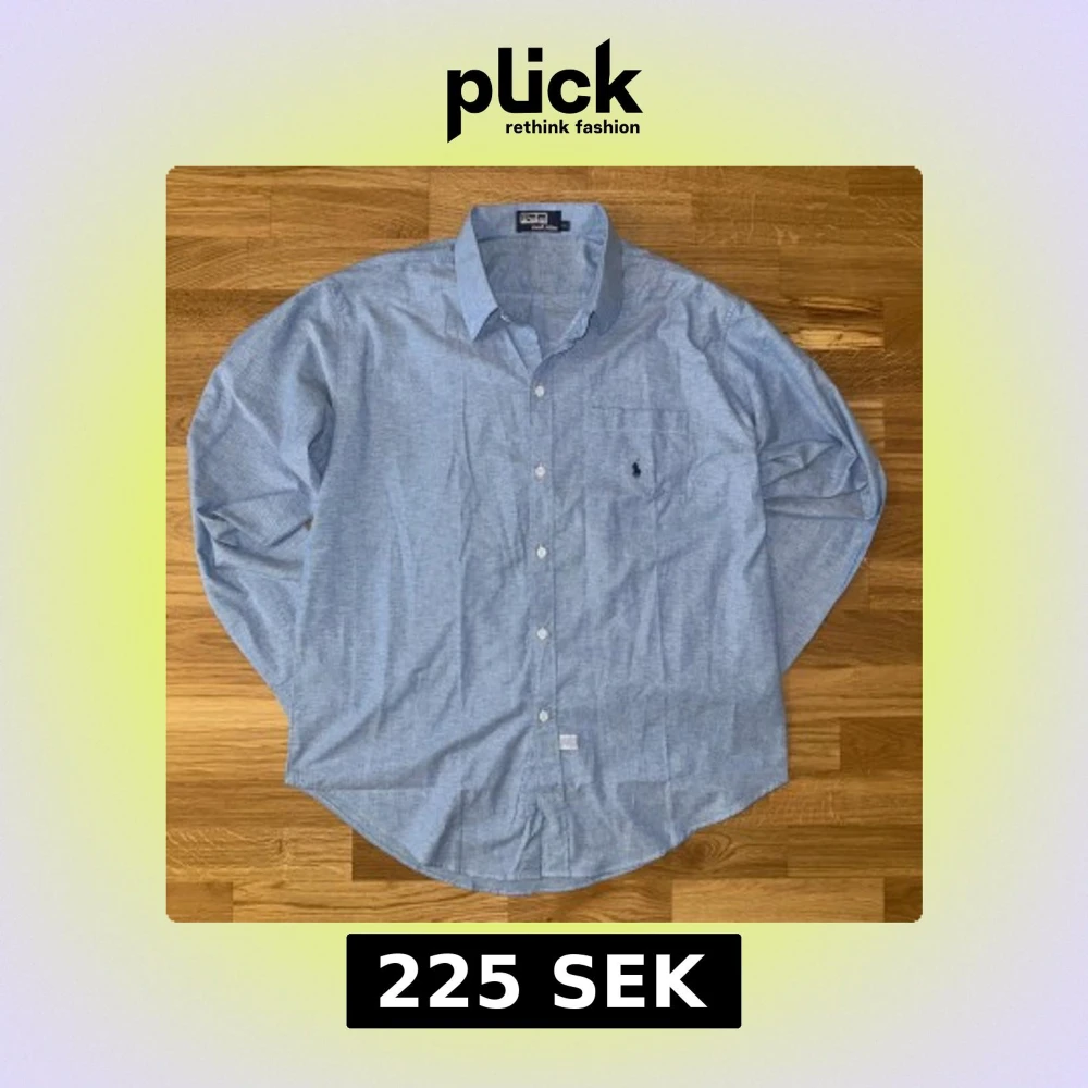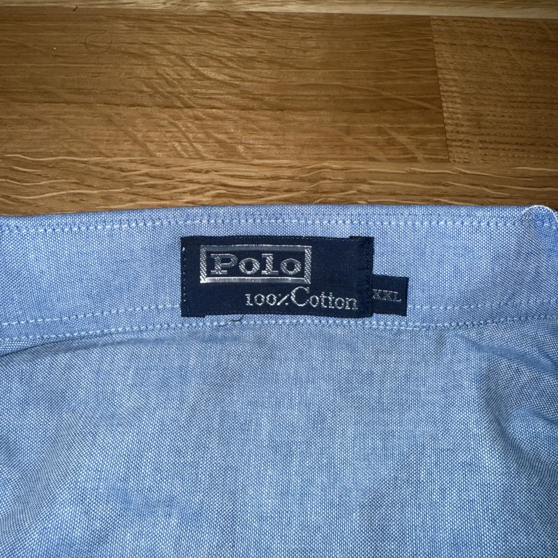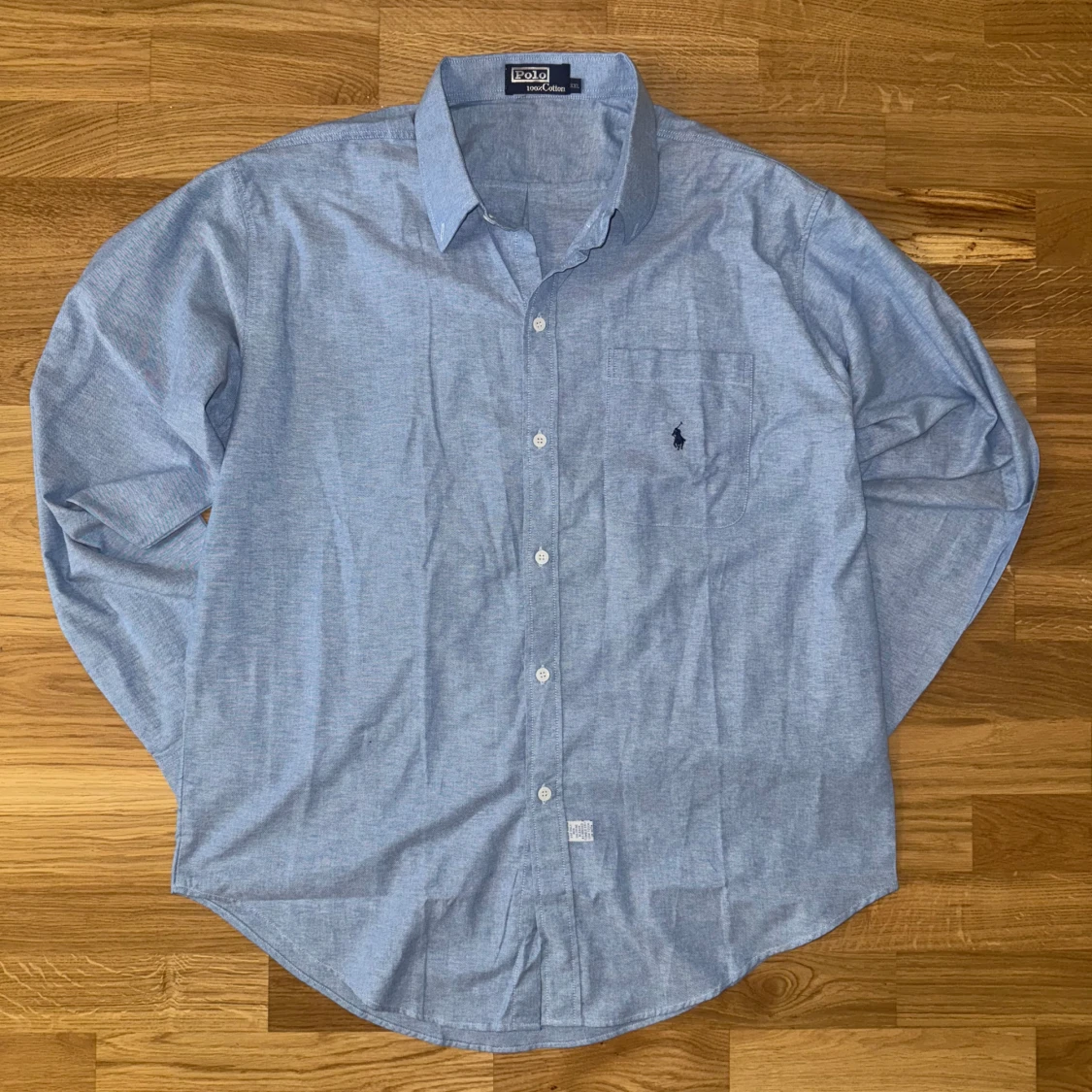 Helt ny blå skjorta från Polo Ralph Lauren i 100% bomull. Skjortan har lång ärm, knappar framtill och en bröstficka med den ikoniska broderade polospelaren. Mått: längd: 70cm. Bredd: 60cm