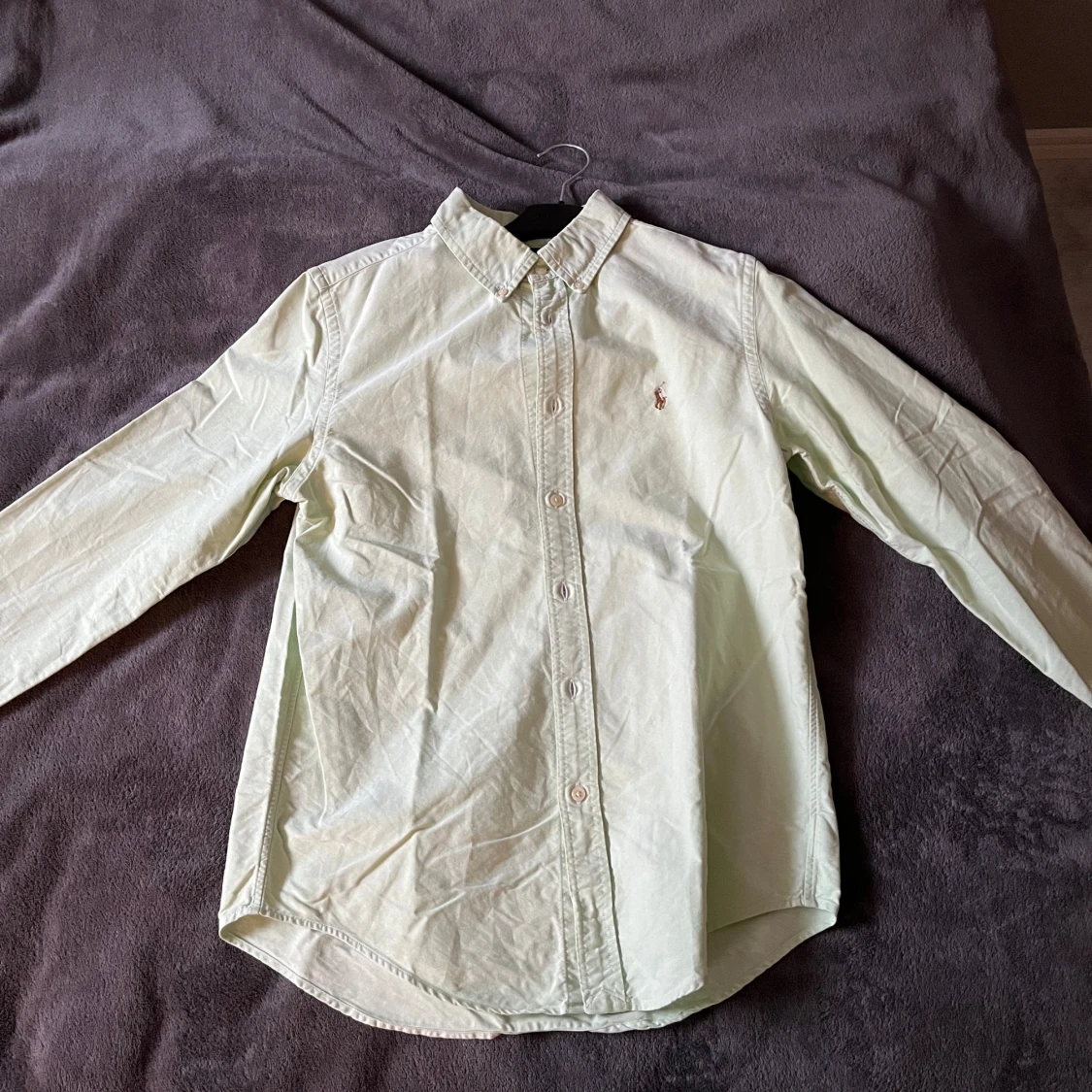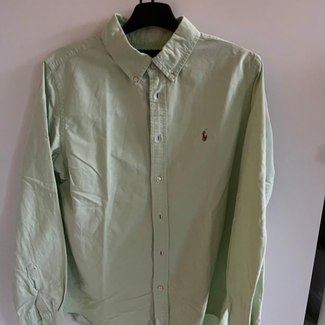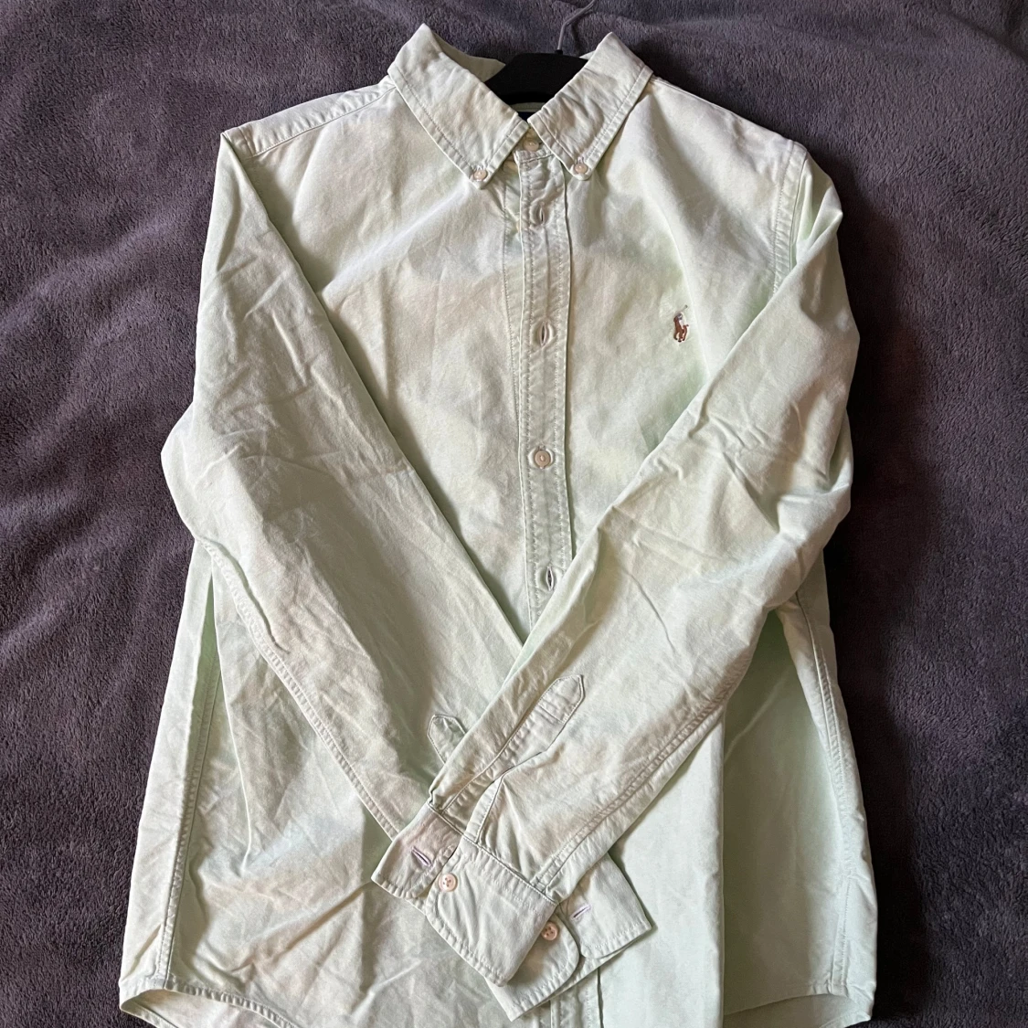 Snygg ljusgrön skjorta från Ralph Lauren med klassisk krage och broderad logga på bröstet. Skjortan är i väldigt bra skick, säljer den då den är för liten för mig. Ganska åtsittande passform med en kortare längd. Tröjan sitter som en S/Xs Hör av er om ni har frågor💫👌