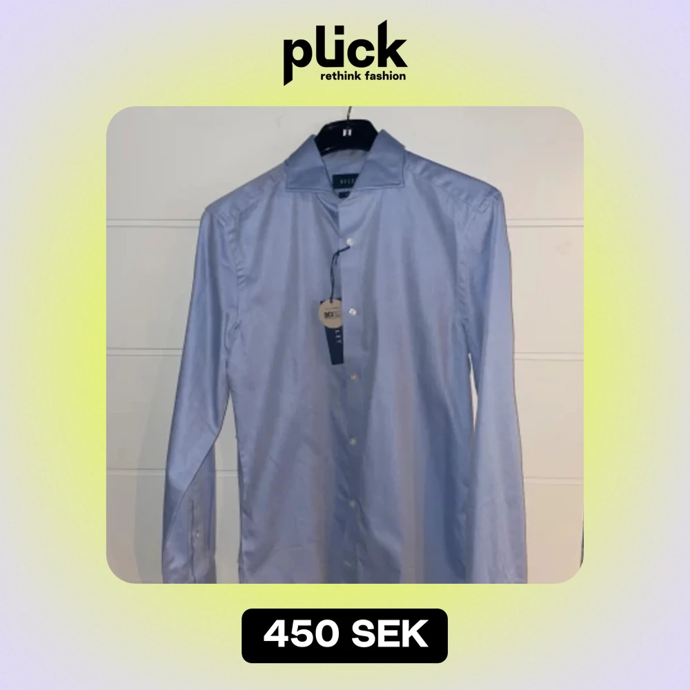 Ljusblå skjorta från Riley. Aldrig använt lappar hänger kvar, helt som ny. Nyskick. Storlek S Nypris: 700 Mitt pris: 300