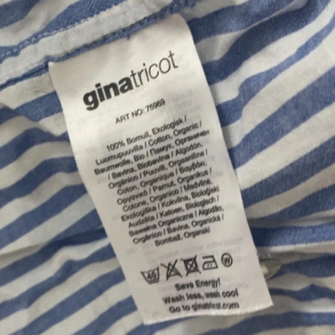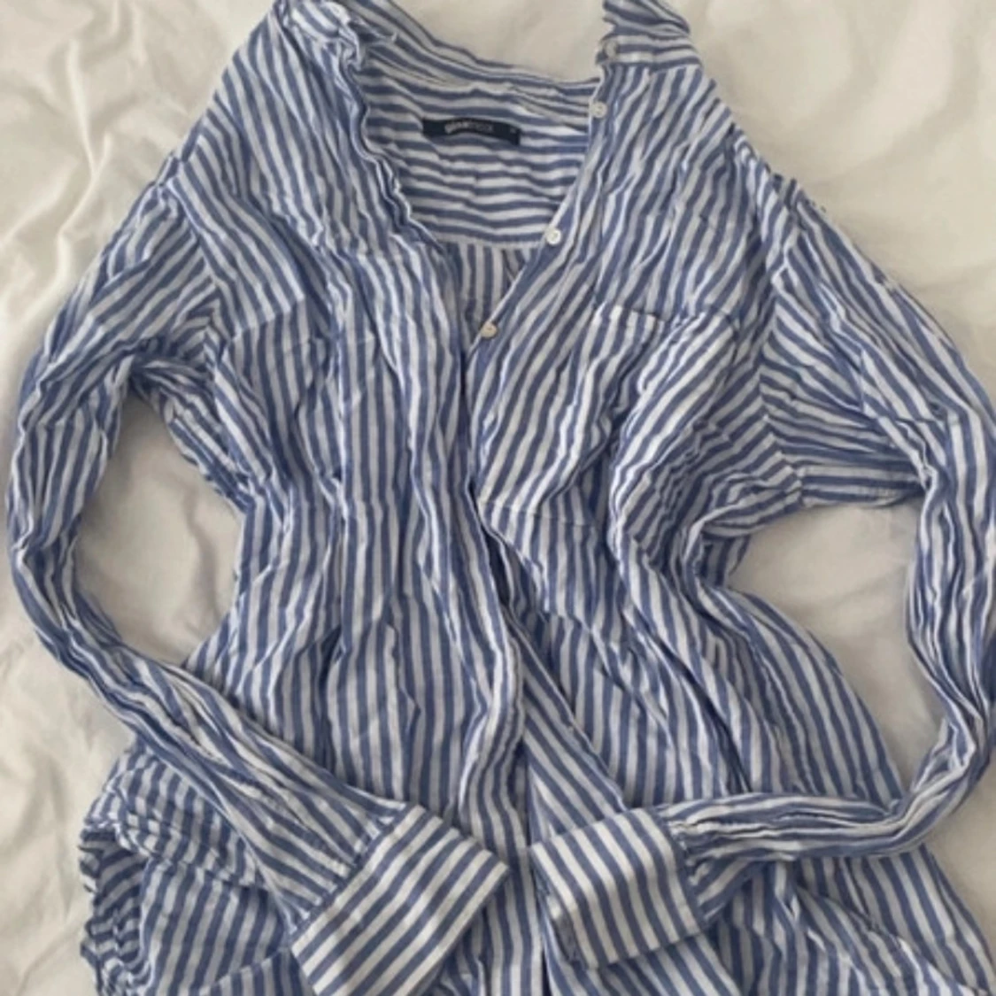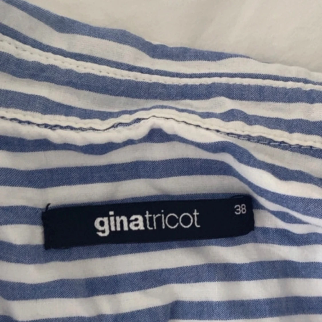 Snygg blåvit randig skjorta från Gina Tricot i 100% ekologisk bomull. Skjortan har klassisk krage, knäppning framtill och långa ärmar med manschett. Perfekt för en chill och stilren look.