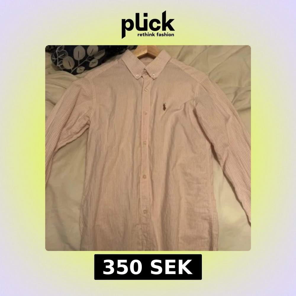 Säljer en slim fit skjorta från Ralph Lauren i rosa och vitt med tunna ränder. Skjortan har klassisk krage, knäppning framtill och broderad logga på bröstet. Perfekt för dig som gillar stilrena plagg med snygga detaljer.