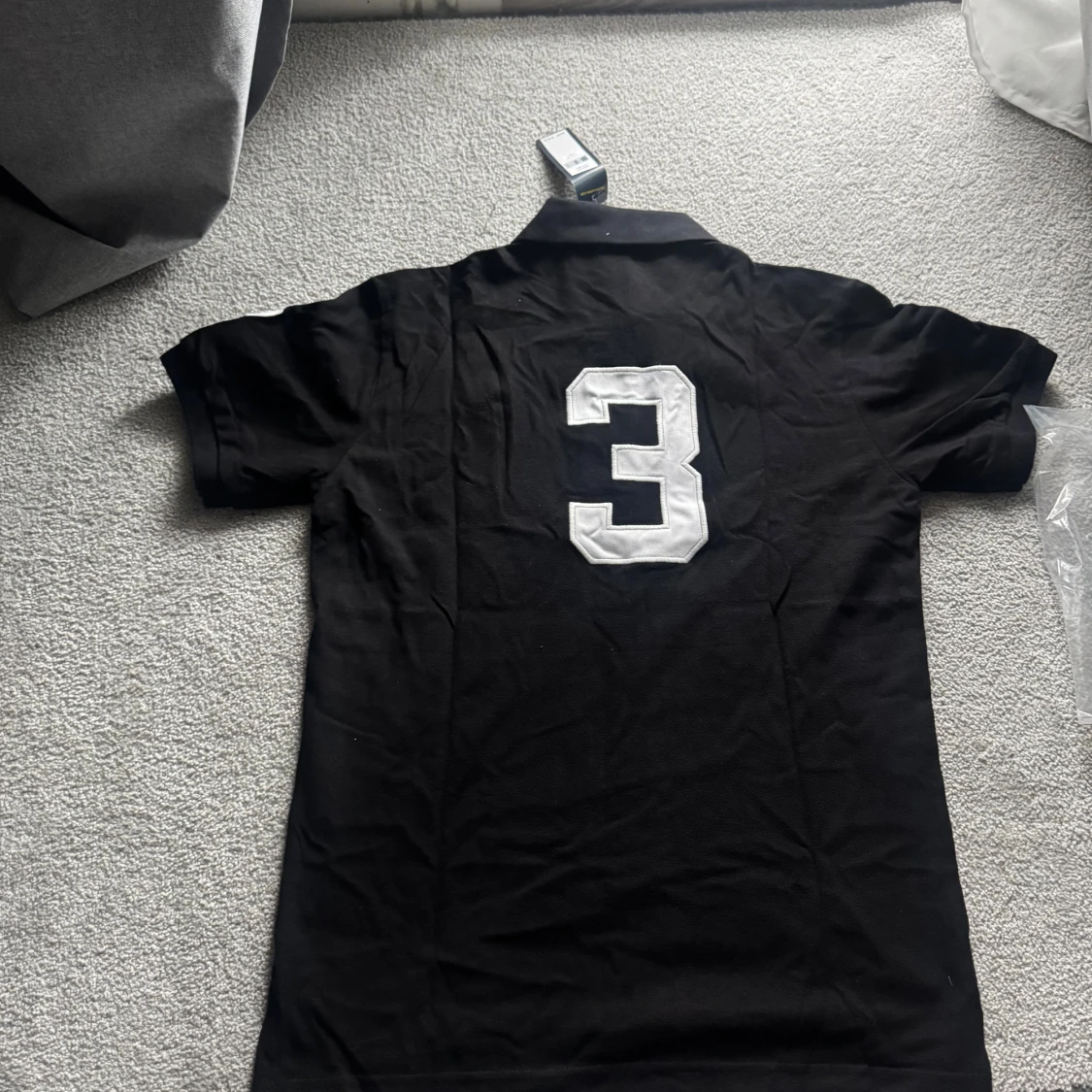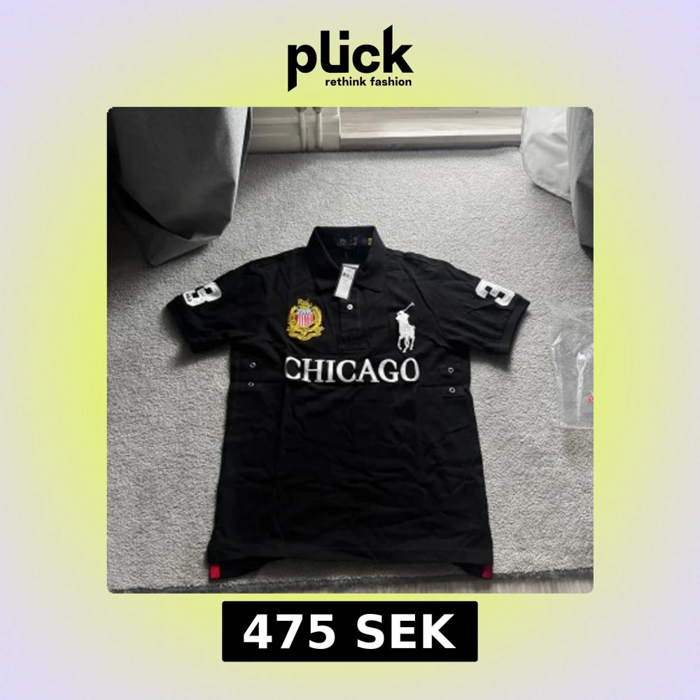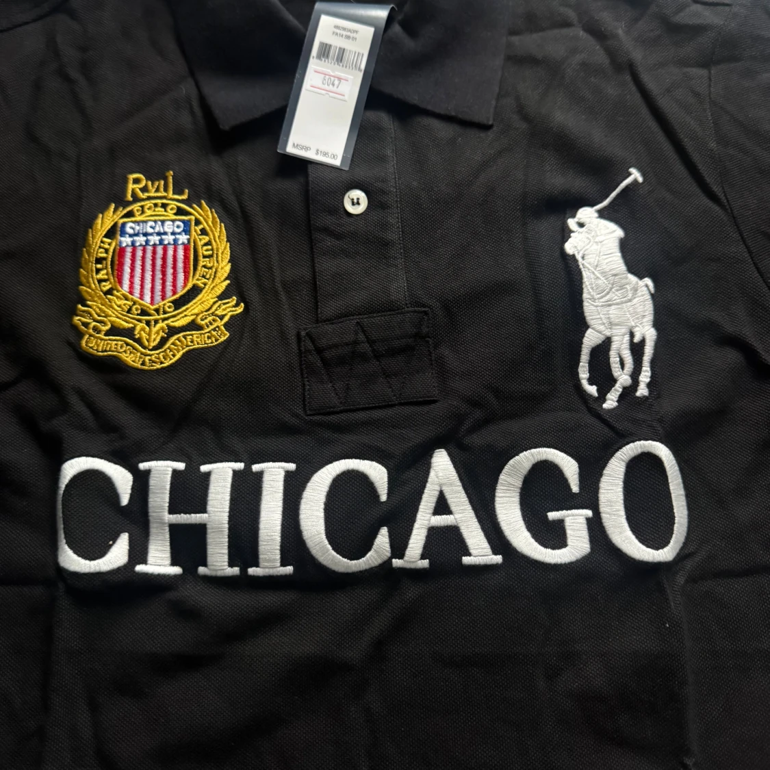 Svart pikétröja från Ralph Lauren med broderad logga, stort CHICAGO-tryck och guldfärgad emblem på bröstet. Nummer 3 på ärmen och ryggen. Slim fit modell med korta ärmar och klassisk krage. Perfekt för dig som gillar sportig och stilren look.