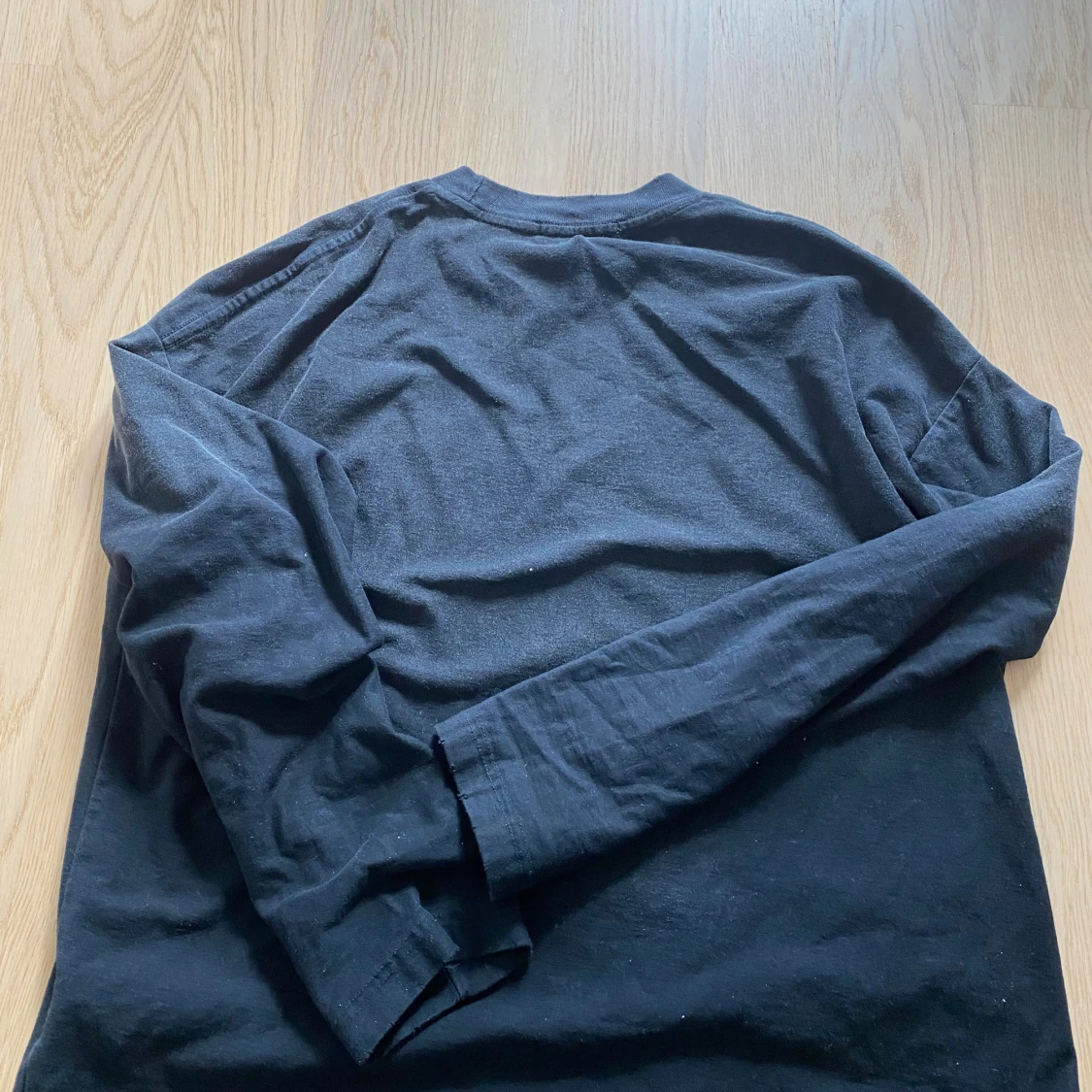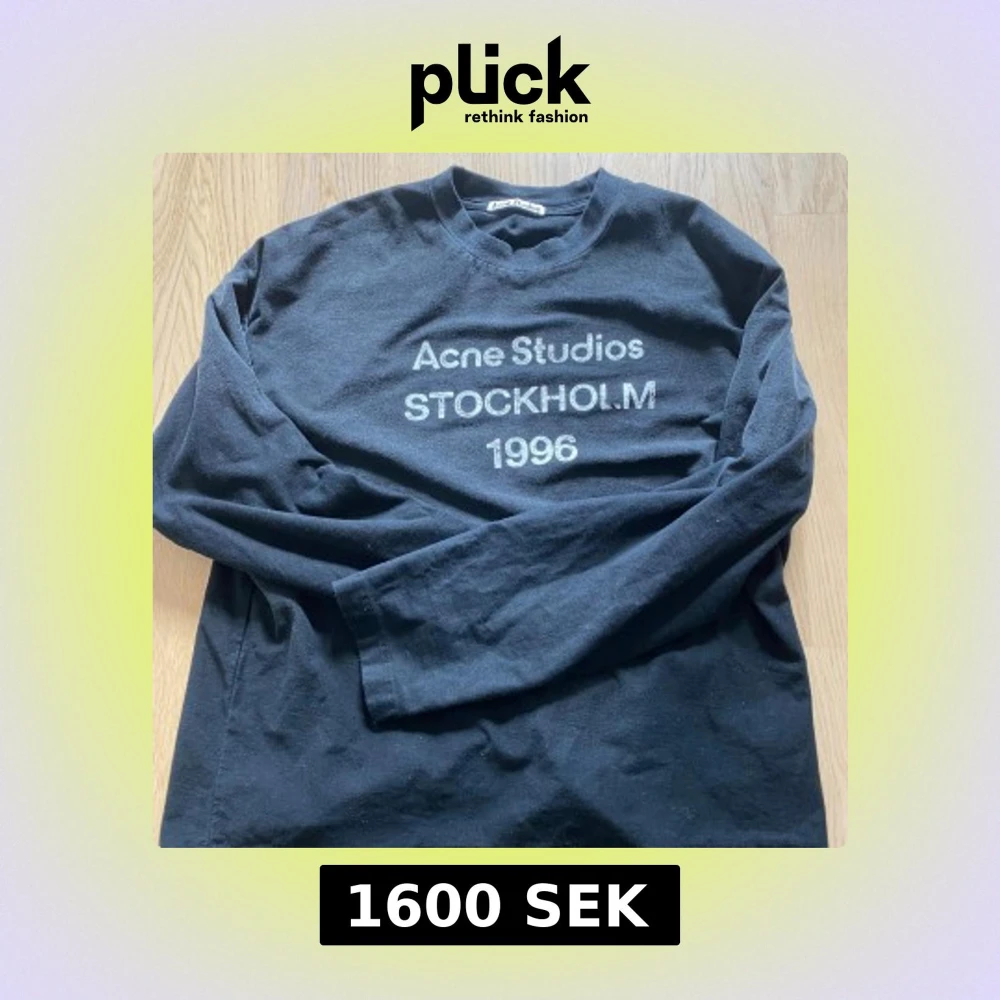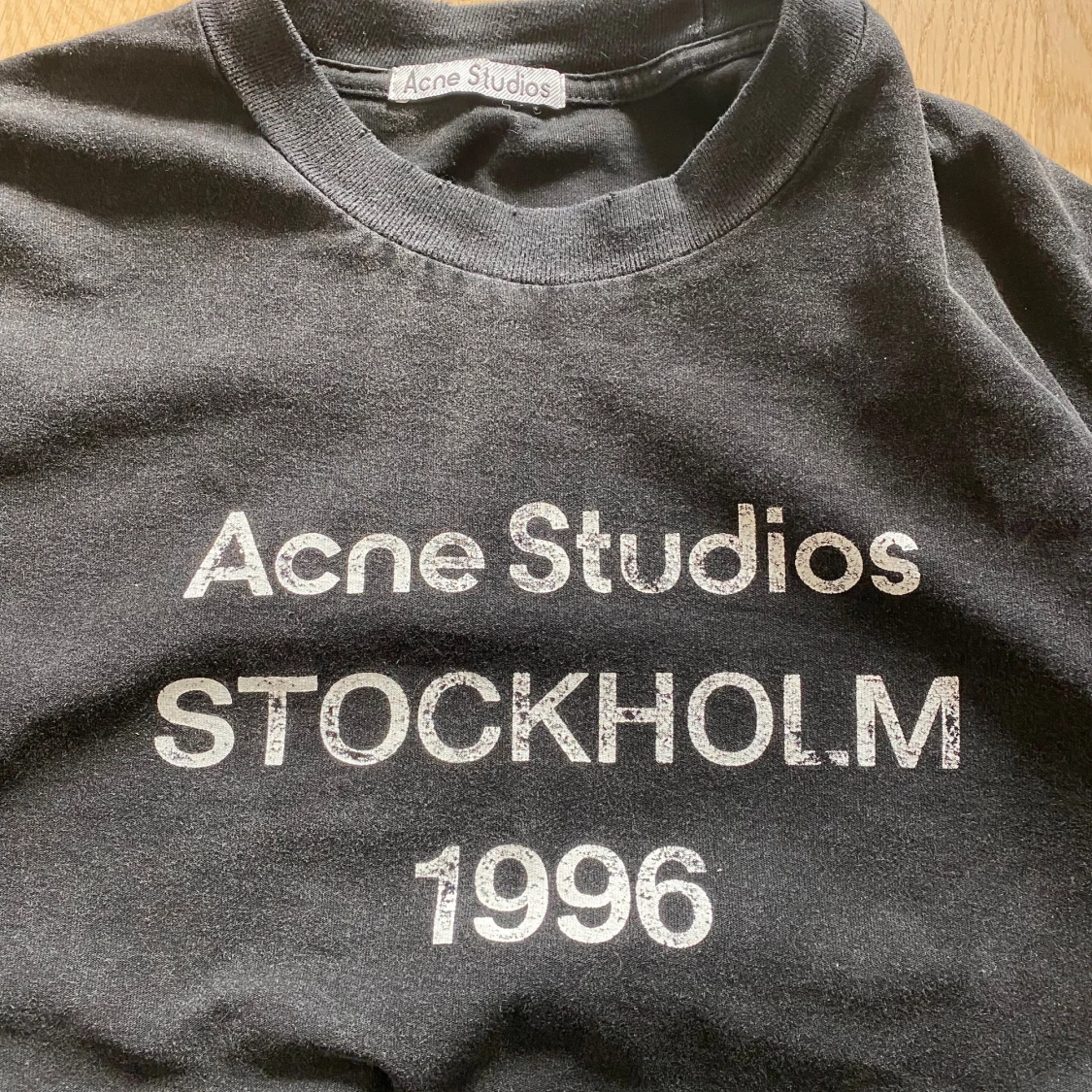 Svart långärmad tröja från Acne Studios med vit text 'Acne Studios STOCKHOLM 1996' på bröstet. Rund hals och relaxed passform, tillverkad i mjuk bomull. Perfekt för dig som gillar stilrena och klassiska streetwear-plagg.