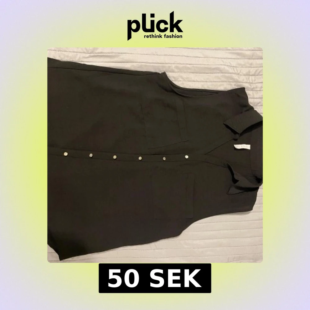 Snygg svart ärmlös skjorta från Amisu med knappar framtill. Perfekt för en stilren look. Skjortan har en klassisk krage och två bröstfickor som ger en extra touch.