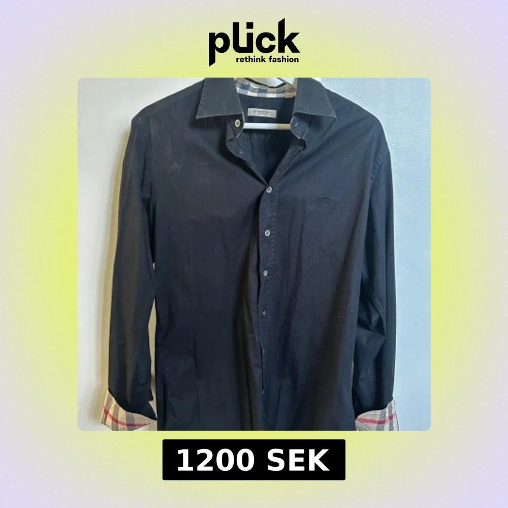 Svart skjorta från Burberry i bomull med klassisk rutig insida på krage och manschetter i beige, rött och grått. Broderad Burberry-logga på bröstet, knappar framtill och långärmad modell. Perfekt för dig som gillar stilrena plagg med lyxig touch.