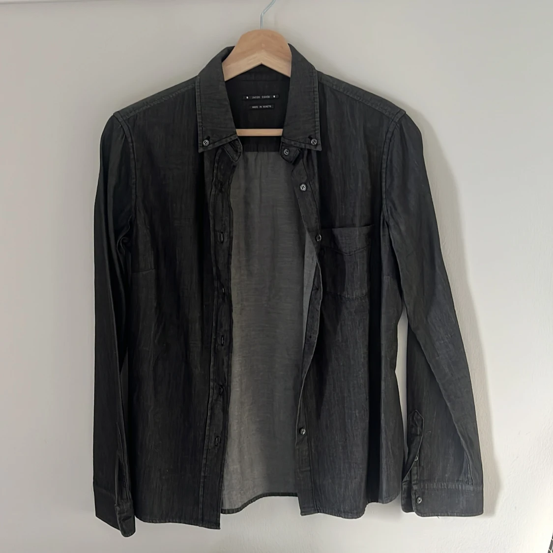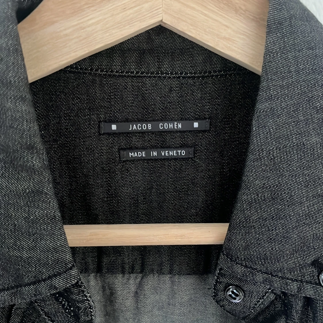 Snygg svart jeansskjorta från Jacob Cohen, tillverkad i Veneto. 10/10 skick aldrig använd. Storlek small men passar som en XS slimfit Nypris: 2500 Mitt pris: 499