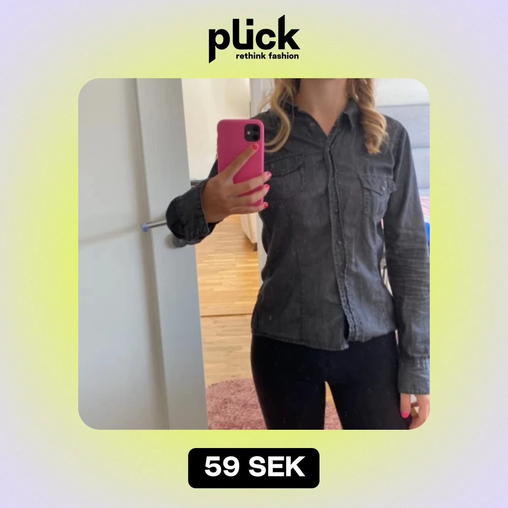 Säljer en snygg svart jeansskjorta i storlek S. Skjortan har långa ärmar och knappar framtill. Perfekt för en casual look eller att klä upp med accessoarer. Den är i bra skick och redo för nya äventyr! Armarna kan även knäppas så att de blir kortare (trekvart)
