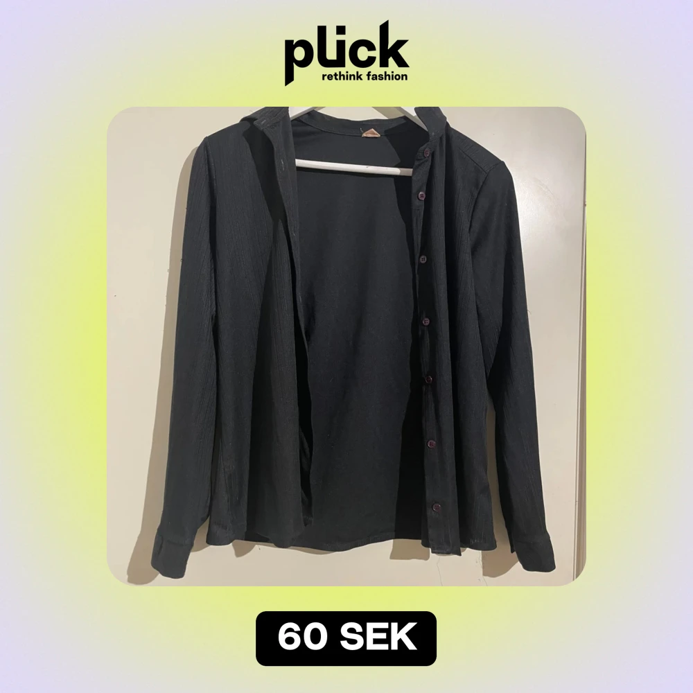 Snygg svart långärmad skjorta med knappar. Perfekt för en stilren look. Skjortan har en klassisk krage och är tillverkad i ett bekvämt material. Storleken stod inte på skjortan, men kan tänka mig att den är i S/M
