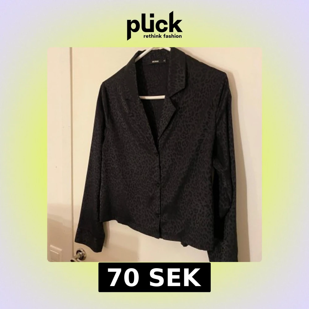 Snygg svart skjorta från Bik Bok med leopardmönster. Skjortan har långa ärmar och knappar framtill, perfekt för en trendig look.