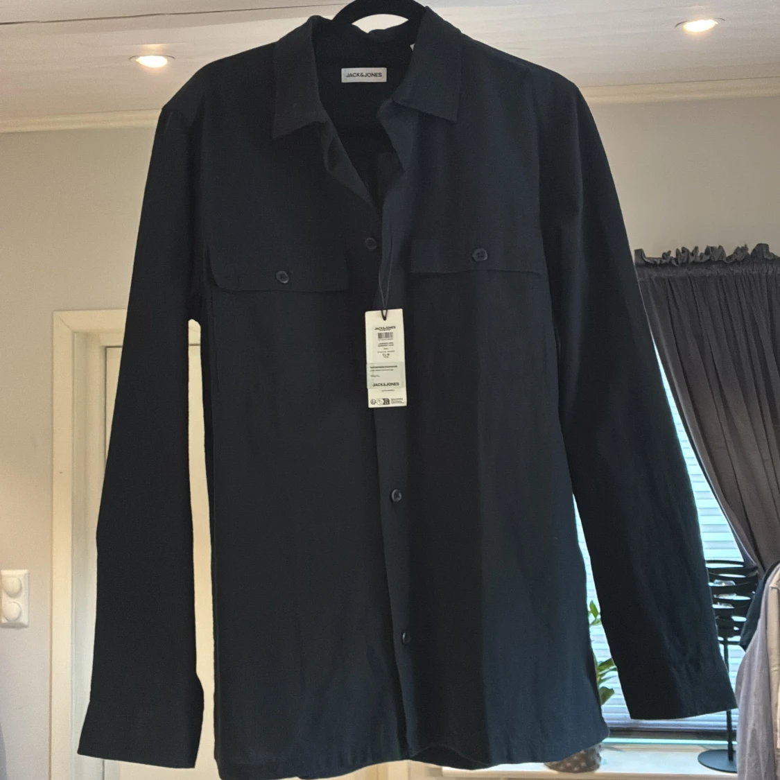 Helt oanvänd stilren svart overshirt från Jack & Jones med klassisk krage och två bröstfickor med knappar. Skjortan har långa ärmar och knäppning framtill. Perfekt för dig som gillar en clean och enkel look.