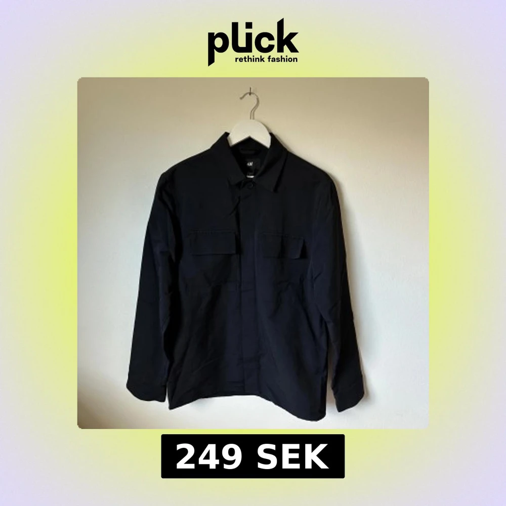 Stilren svart overshirt från H&M med klassisk krage och två bröstfickor med lock. Skjortan är tillverkad i en mix av bomull och polyamid, har långa ärmar med manschett och knappar framtill. Perfekt för lager-på-lager och enkel att matcha. 3U4