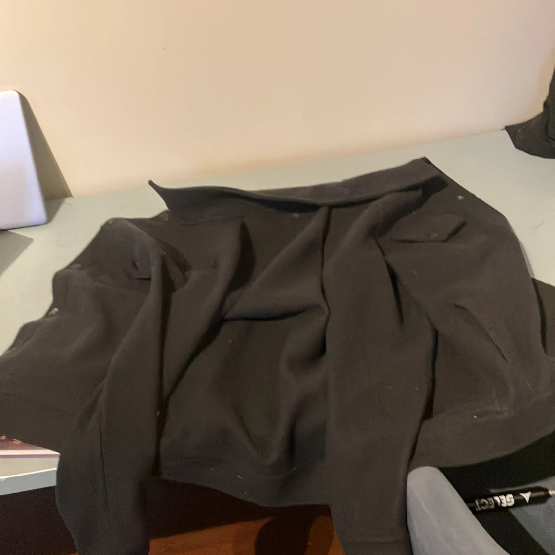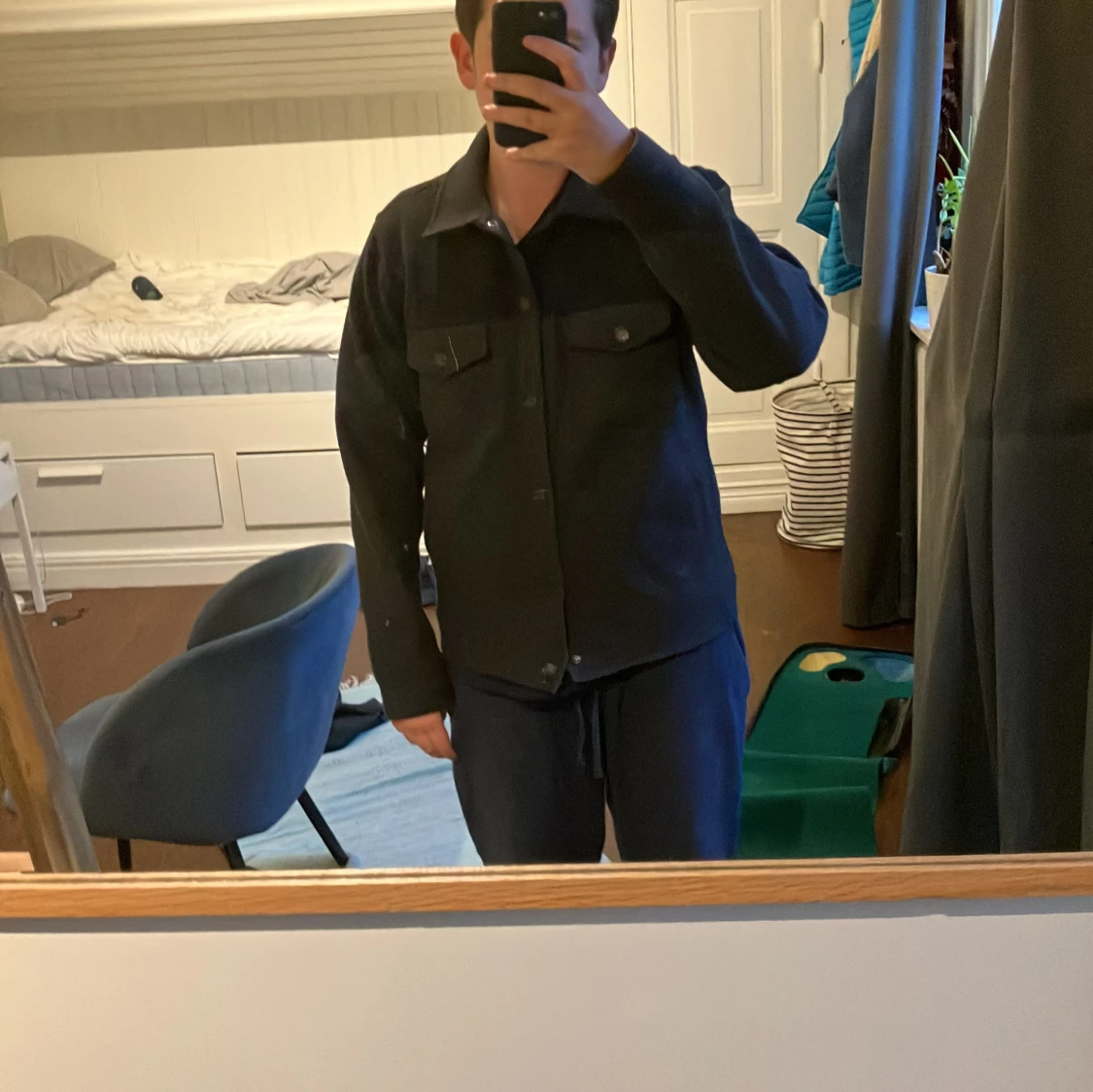 Svart overshirt från Only & Sons i storlek M. Snygg klassisk design med krage, bröstfickor med lock och knappar framtill. Materialet är ullblandning som ger en skön och lite ruggad känsla. Perfekt att ha som lager över en t-shirt eller hoodie.
