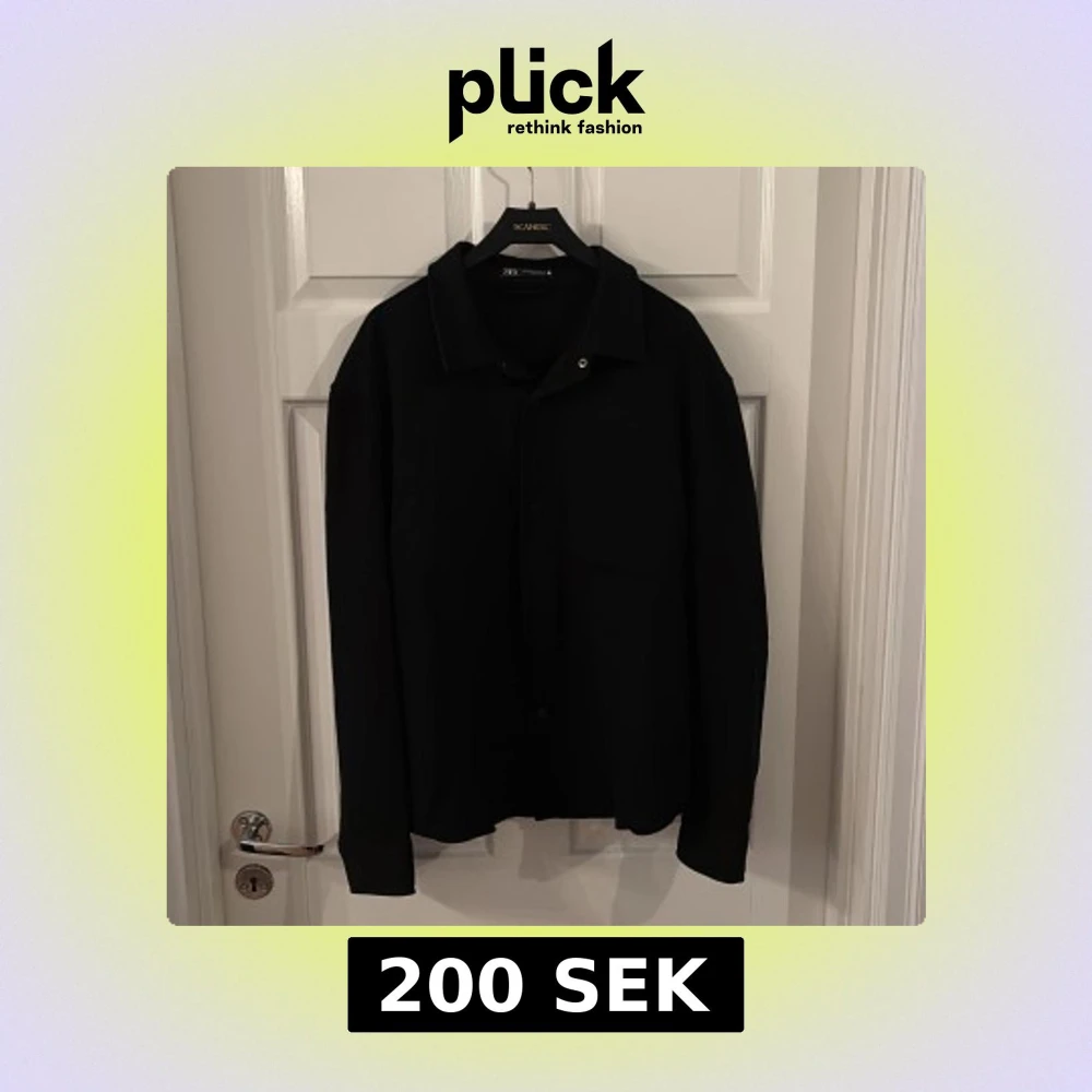 Stilren svart overshirt från Zara med klassisk krage och knäppning framtill. Skjortan har lång ärm och en enkel, clean look som passar till många outfits. Perfekt att bära som lager över en t-shirt eller tröja.